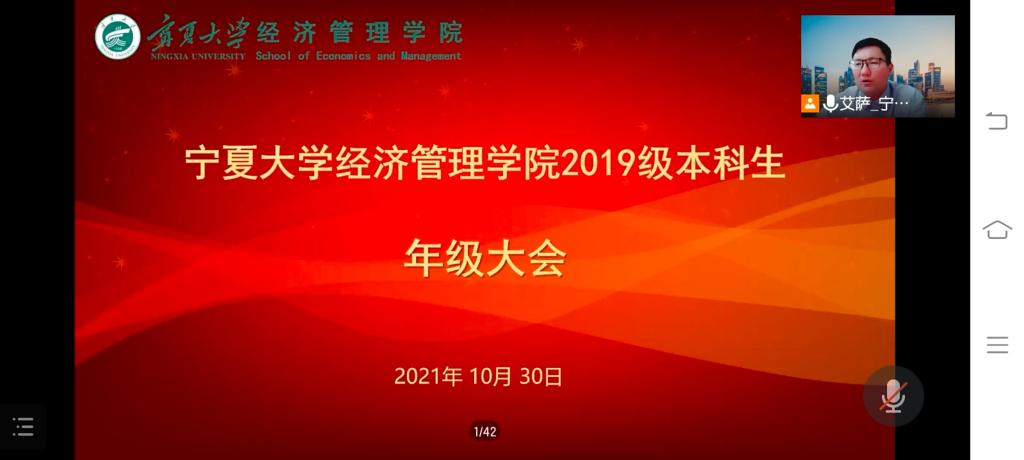 10月30日晚,beat365在线官网入口2019级本科生年级大会在线上顺利举行。公司党委副书记程胜利、beat365在线官网入口员工工作办公室主任黄旭兴、beat365在线官网入口员工工作办公室辅导员艾萨•阿尤普、孙文元、禹文杰以及2019级全体本科生参加了会议。会议由艾萨主持。