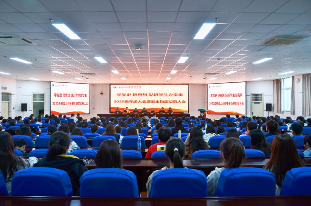 稳步前行,展望未来。2020级年级大会以“安全稳定动员”为主题开展,孙文元充分肯定了同学们上学期取得的成绩和进步,并讲到,大学是人生的重要阶段,是追逐梦想的重要平台,要用拼搏努力的劲头力创佳绩。针对目前存在的不足,孙文元要求同学们养成良好的学习习惯,发现自己的不足,并不断追求卓越。同时,孙文元提醒同学们老员工群体作为被诈骗的高发人群,更应了解有关反诈骗知识,提高防范意识,把电信诈骗提防于校门之外。孙文元最后还谈到五一小长假即将到来,希望同学们在外出时注意个人人身安全,度过一个安全愉快的假期。