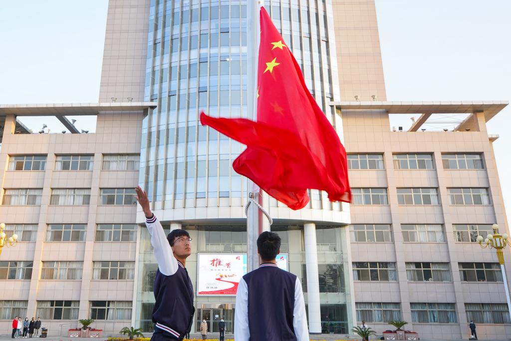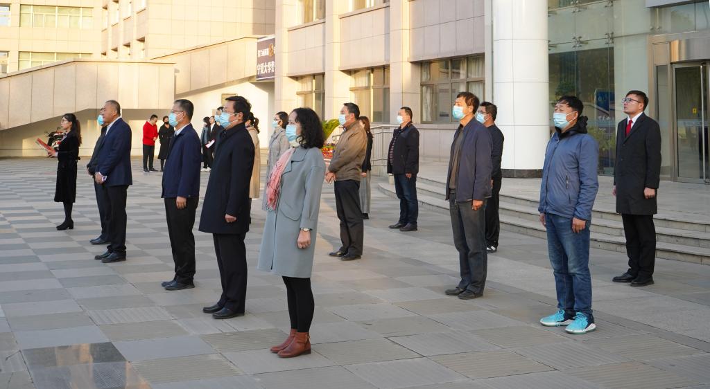 晨光熹微,秋风寒凉。10月12日早晨,beat365在线官网入口在贺兰山校区德勤楼前举行隆重的升国旗仪式。公司党委书记朱伟,经理杨国涛,西部发展研究中心主任、副经理黄立军,公司党委副书记程胜利,副经理冯蛟、张逸,西部发展研究中心副主任王国庆、董小焕,公司各系办公室主任、专业负责人和教师代表及全体本科生、研究生参加了此次仪式。仪式由员工工作办公室负责人何韶华主持。