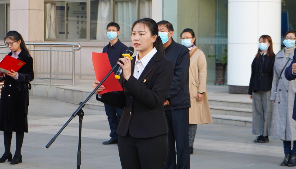 长远思考,懂得选择。公司员工代表2017级农林经济管理专业本科生倪雪作国旗下演讲。她以习近平总书记的一句话“我国广大青年要坚定理想信念,培育高尚品格,练就过硬本领,勇于创新创造,矢志艰苦奋斗,同亿万人民一道,在矢志奋斗中谱写新时代的青春之歌”为中心,结合自己大学三年的学习生活经历,鼓励同学们长远思考,学会学习,把认真对待工作和学习文化知识统一起来。