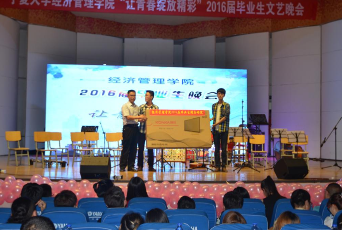 晚会中场,张桓老师对公司优秀毕业生、优秀员工党员、优秀宣传员、优秀毕业论文获得者进行了表彰,并为各位获奖者颁奖。颁奖结束,精彩的表演继续呈现。舞蹈《shake it》、《咋了爸爸》动感十足、活力四射,黄旭兴老师与第十四届团学成员的活泼舞姿引得全场掌声雷动、欢呼阵阵。逃离子夜乐队的弹唱《那一年》、《再见杰克》更是把现场气氛推向了高潮。《cosplay》带领我们进入梦幻二次元的世界。弹唱《不说再见》不忍跟青春说再见,跟青春年少道一声《借过》,仍留下《一生有你》的感激。晚会在充满祝福与离别的歌声里圆满落幕。