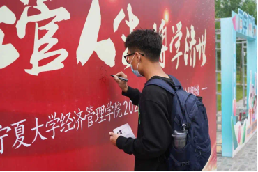 今年的新生报到在beat365贺兰山校区。beat365在线官网入口志愿者马甲独特的蓝让人眼前一亮。志愿者们的身影穿梭在门口搬运行李的路上、穿梭在引导新生报道的路上、穿梭在去新宿舍的路上。