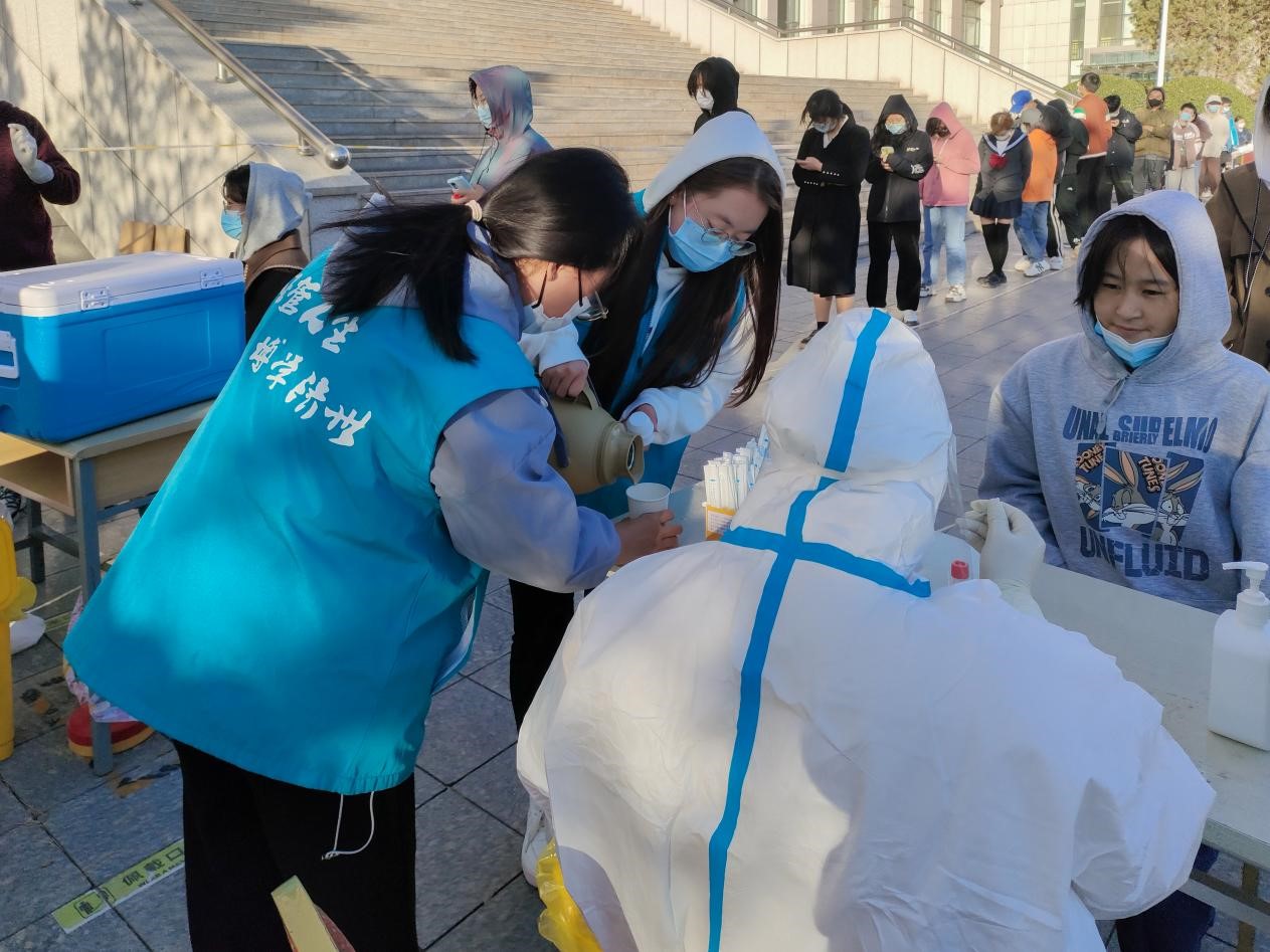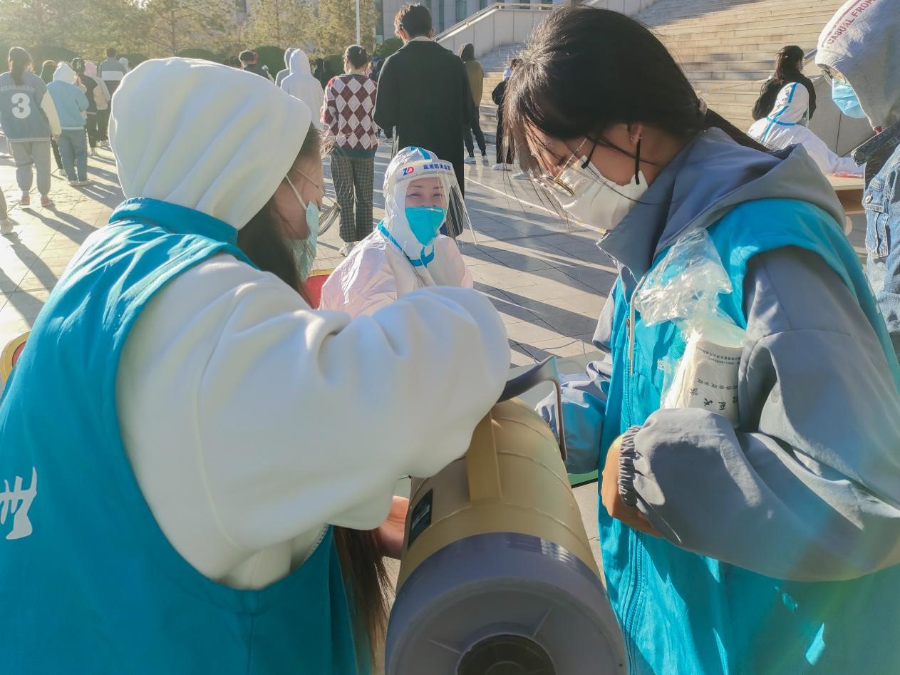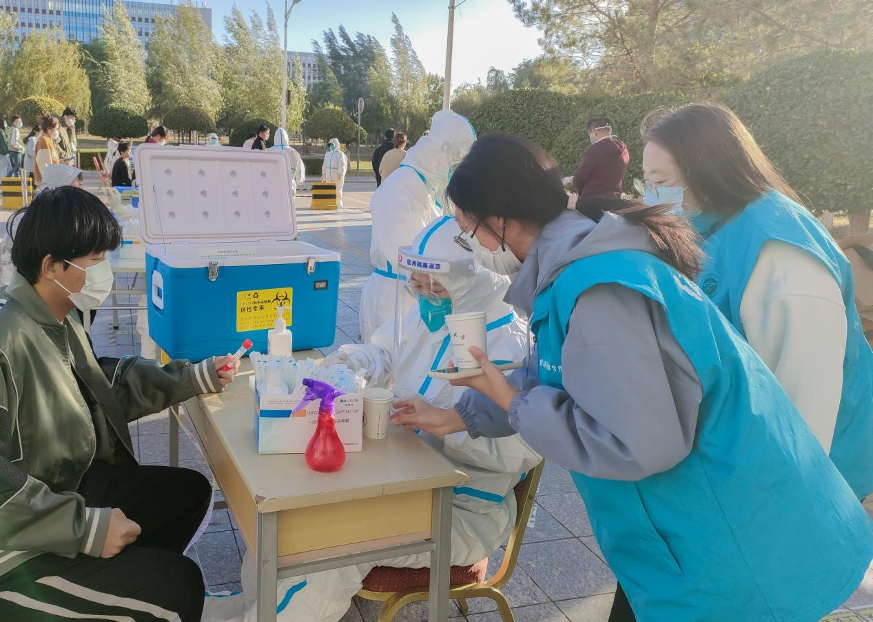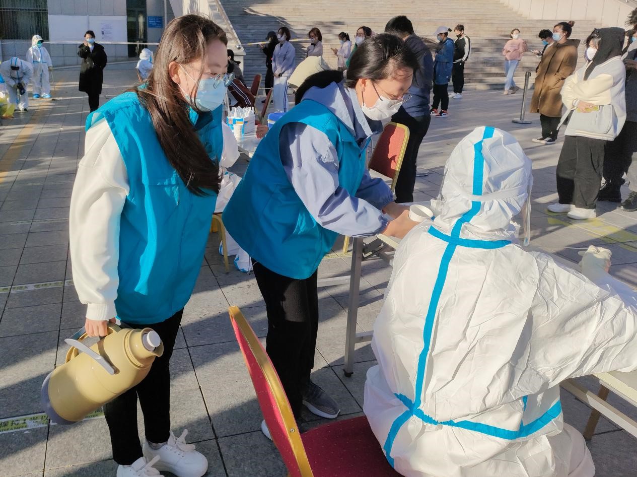 10月8日下午,beat365贺兰山校区开展了核酸检测工作,在公司团委的部署下,经管志愿者们为医护人员送热水,在寒风凛冽中彼此守望。