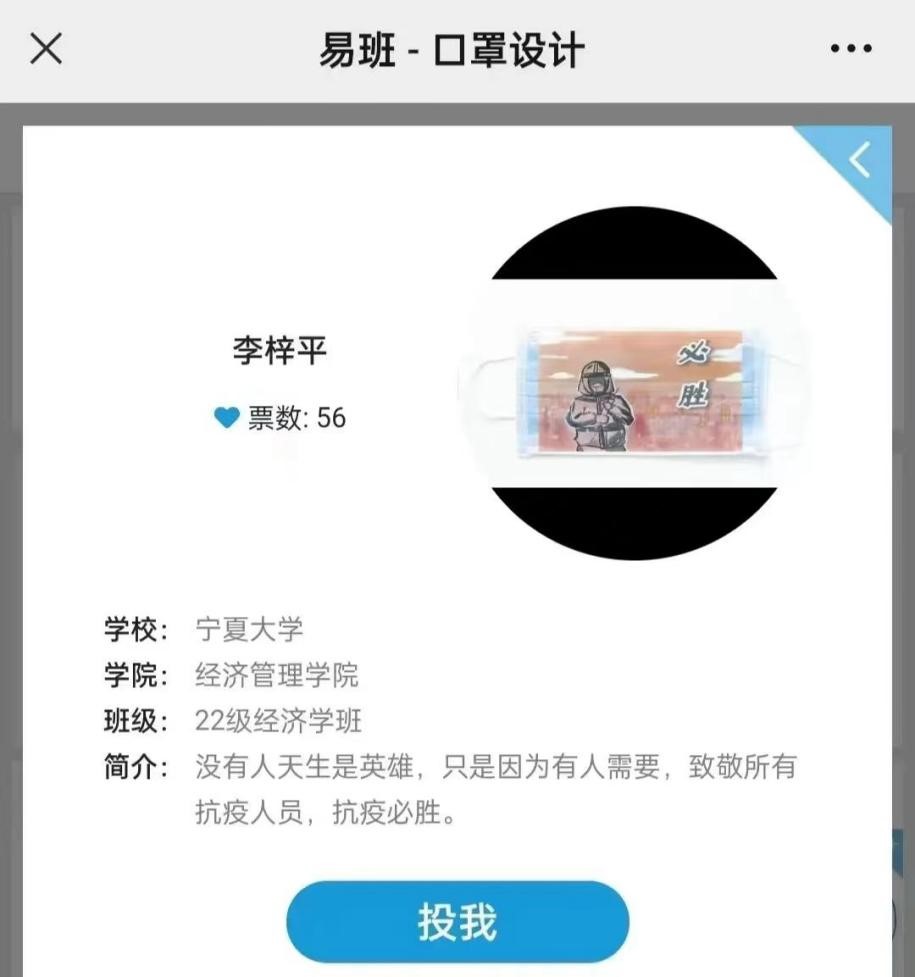 同学们亲自动手,自我发挥,在他们的用心勾勒下,款式单一的口罩变为一件件美丽的艺术品。这一个小小的口罩,承载着参与者心系疫情的担忧,更是承载着“众志成城抗击疫情”的顽强抗疫精神。其他同学通过投票支持自己心目中的最佳设计品。此举有效的缓解了疫情带给同学们的压力和焦虑。