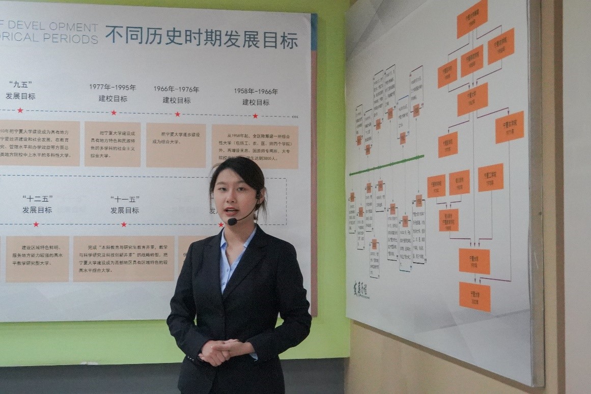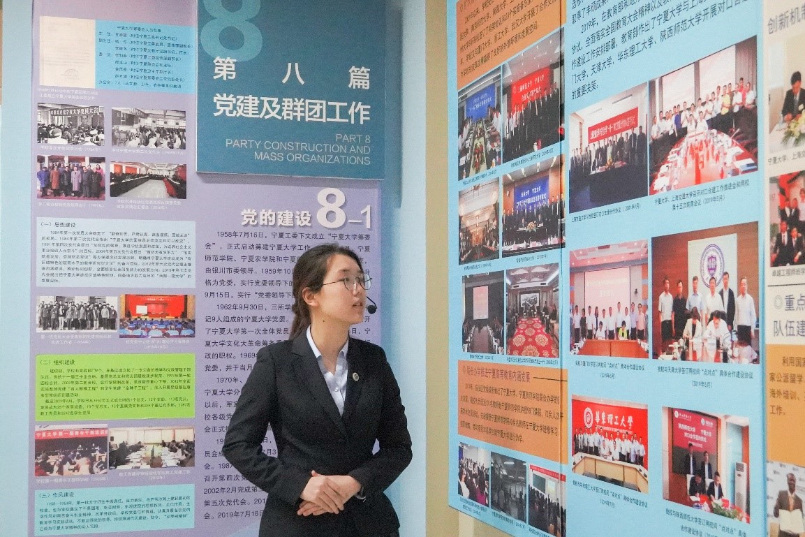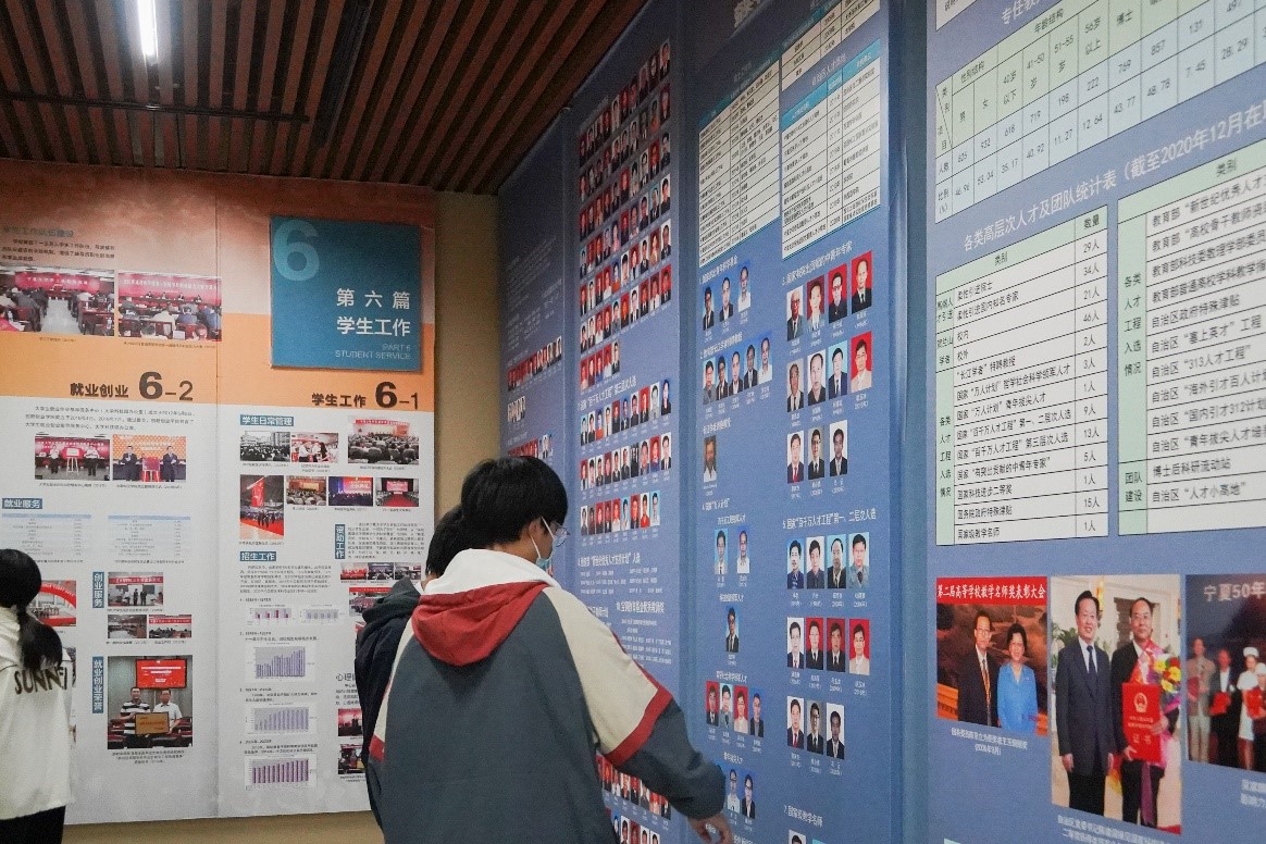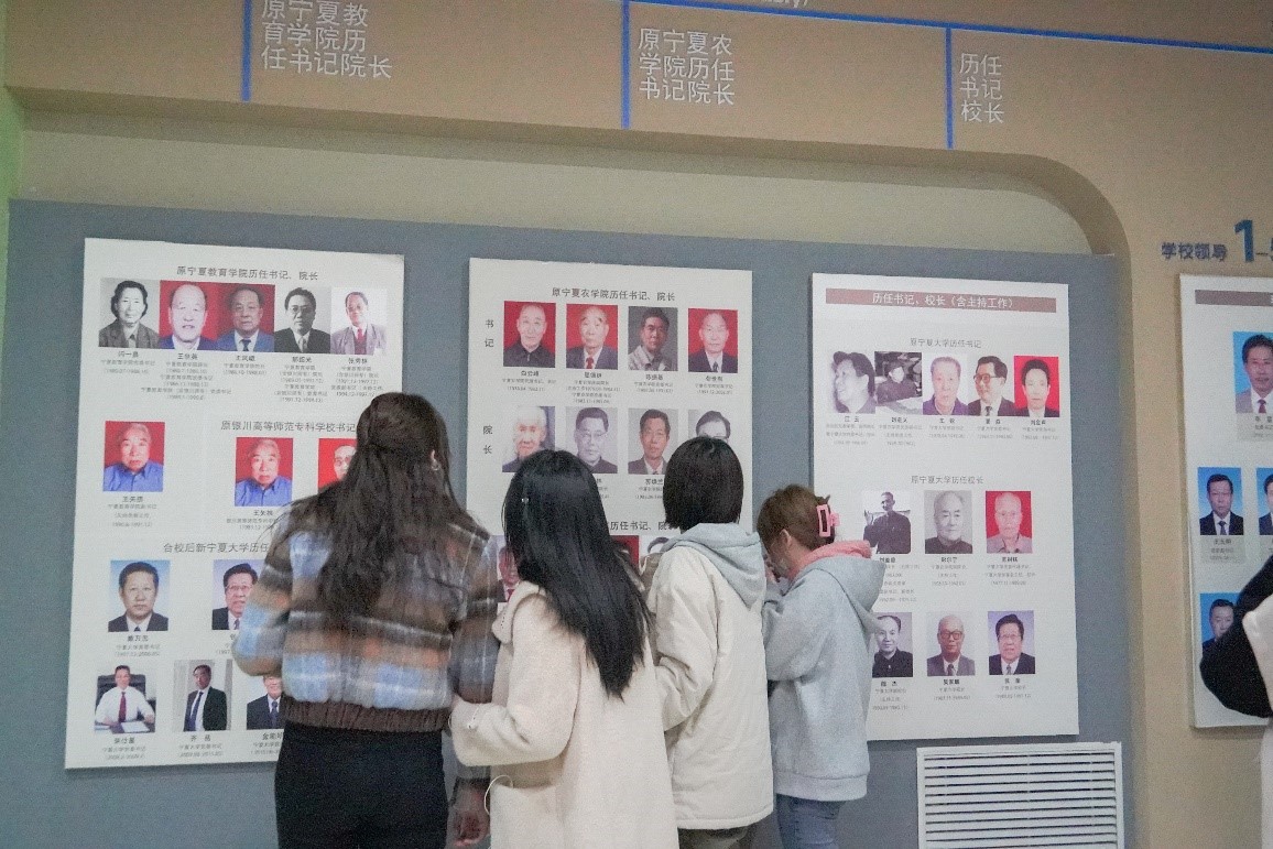 讲解员先是帮助同学们重温了公司的历史沿革,从校徽、校训、校歌等角度介绍着公司的建校初心与昔日征程,六十余年的发展也无不展示了一代又一代宁大人对“尚德、勤学、求是、创新”的追求与实践。