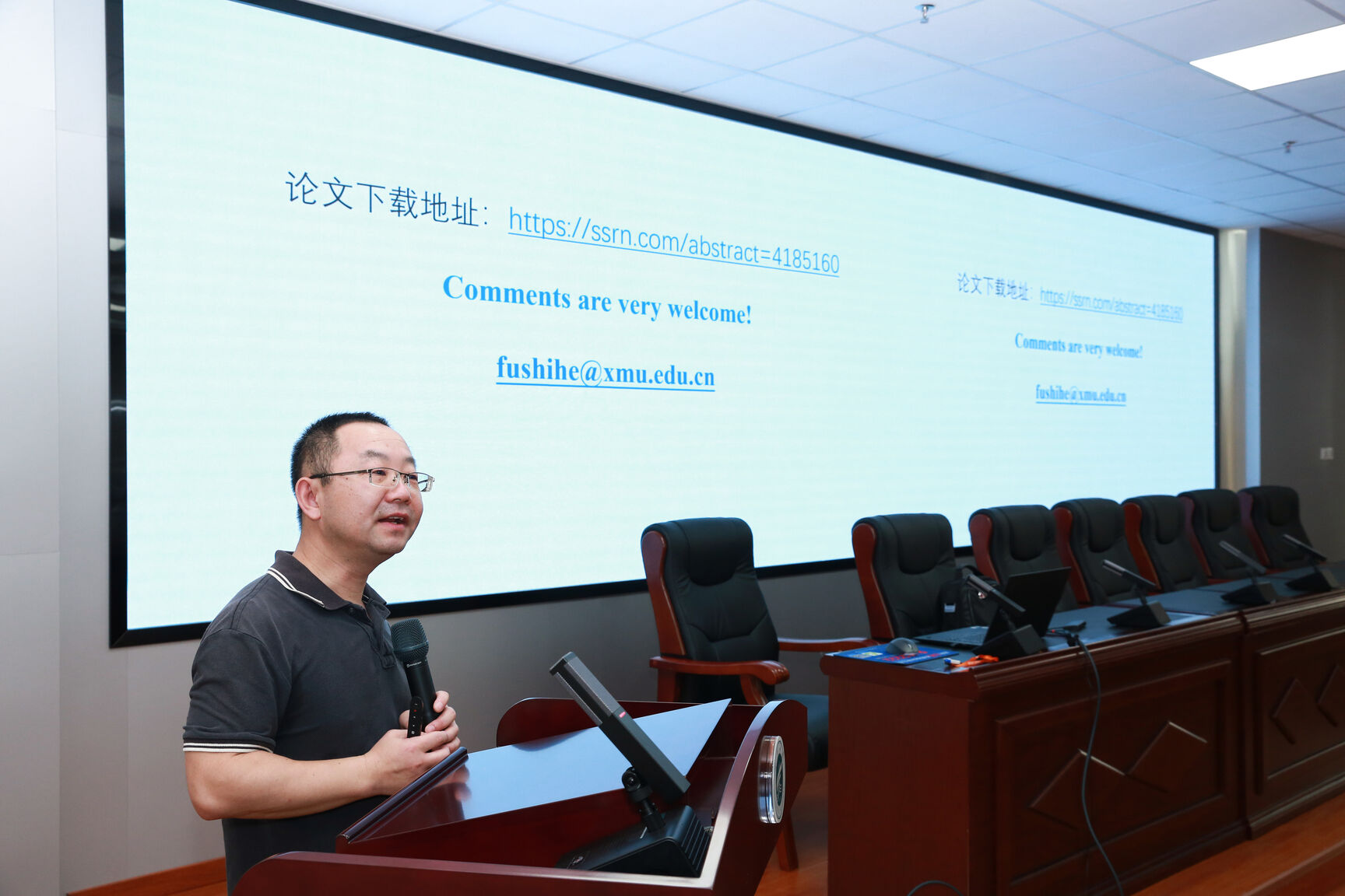 本次夏季论坛论文研讨环节分为上午与下午两场。上午场由华中科技大学钱雪松教授主持,厦门大学傅十和教授、西南财经大学马祥副教授和beat365郭飞博士分别进行报告。