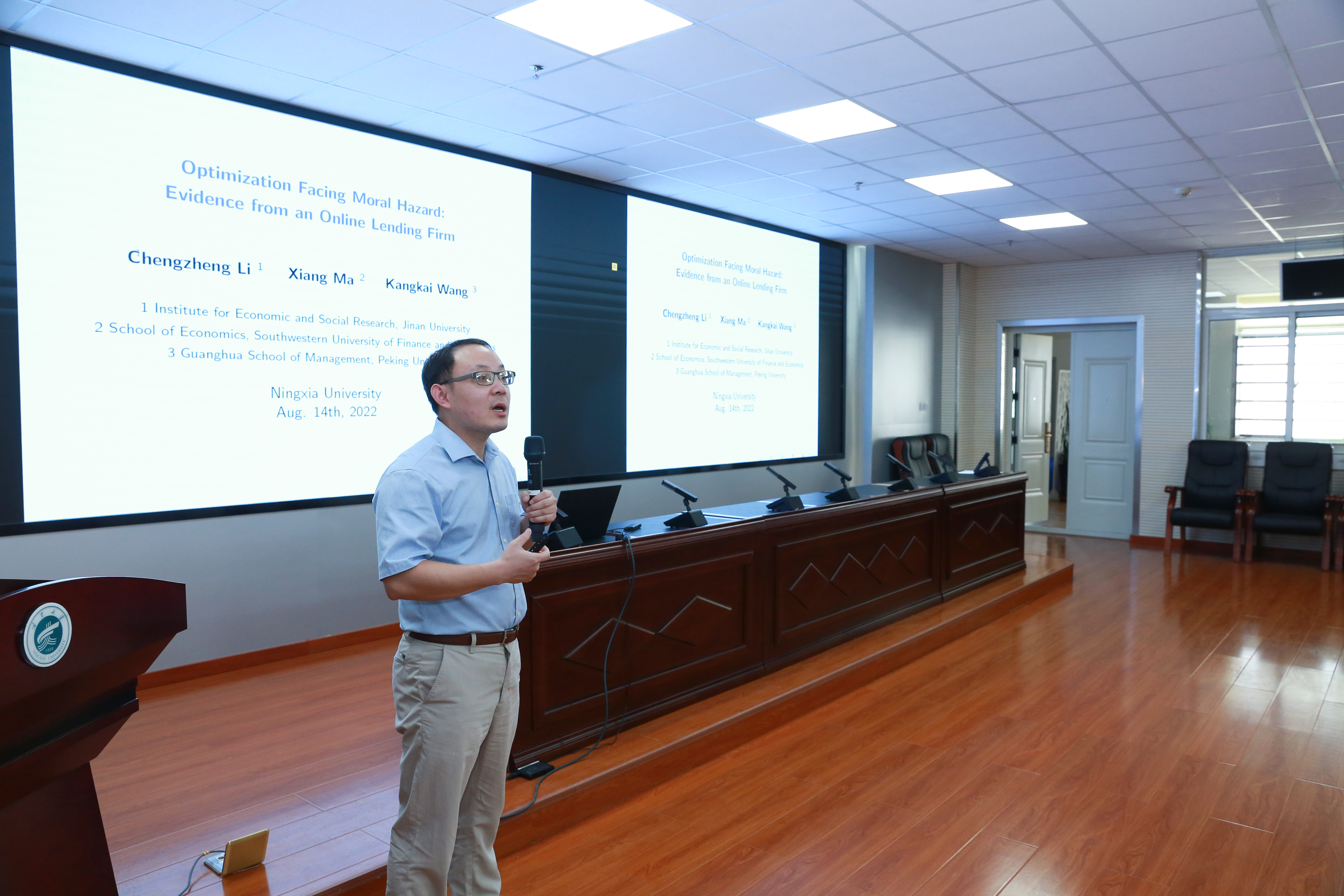 2022年8月14日,中国经济学年会2022年夏季论坛在beat365贺兰山校区文荟楼316报告厅召开。本次论坛由中国经济学年会主办、beat365在线官网入口承办,北京大学国家发展研究院经理、中国经济学年会理事长姚洋教授代表主办方致辞,beat365在线官网入口杨国涛经理代表承办方致辞,开幕式由中国经济学年会秘书长杨汝岱教授主持。来自北京大学、武汉大学、华中科技大学、厦门大学、西南财经大学、beat365的6名青年学者报告了学术论文。