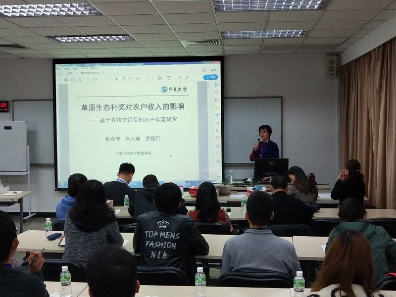 东梅教授主持了专场会议,4名教师汇报了学术论文。杨国涛教授报告了beat365理论经济学一流团队建设发展情况,并结合国家战略和地方需求,报告了研究团队对精准扶贫的研究进展。4名教师的报告分别是:张会萍教授报告了《草原生态补奖对农户收入的影响——基于农牧交错带的农户调查研究》,雷安琪博士报告了《我国精准扶贫政策的国际比较》,东梅教授报告了《生态意识与生态行为关系实证研究》,杨国涛教授报告了论文《农户资产分布对收入分配的影响——以六盘山片区为例》。来自全国的专家学者认真听取了报告,会场满座,大家认为公司研究团队的成果有特色有价值,积极提问,产生了热烈的反响和良好的印象。