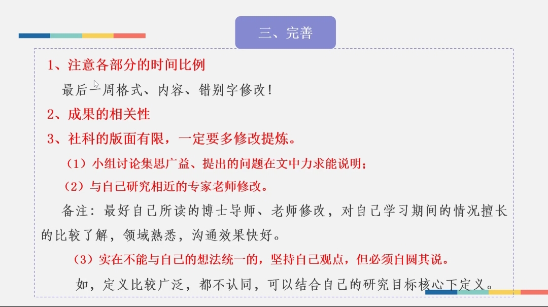 冯骁老师、华静老师针对国家社会科学基金项目申请书的内容要求,结合自身经历从项目的选题、问题的凝练、研究方法和技术路线的设计、研究内容与拟解决关键问题的撰写以及如何发挥自己的研究基础与学术优势等方面,做了细致的介绍和经验分享。