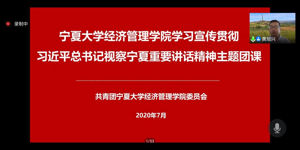 在宁大,有这样一群人,他们心系群众,跋涉长途,扑下身子,苦干实干,带着一片真心去到困难群众的身边,他们是宁大扶贫人。7月15日19时,beat365在线官网入口开展学习贯彻习近平总书记视察宁夏重要讲话精神主题团课,公司团委书记兼员工办公室主任黄旭兴、院团委组织部负责人籍楚妮及2019级全体员工参与,本次团课由籍楚妮主持。