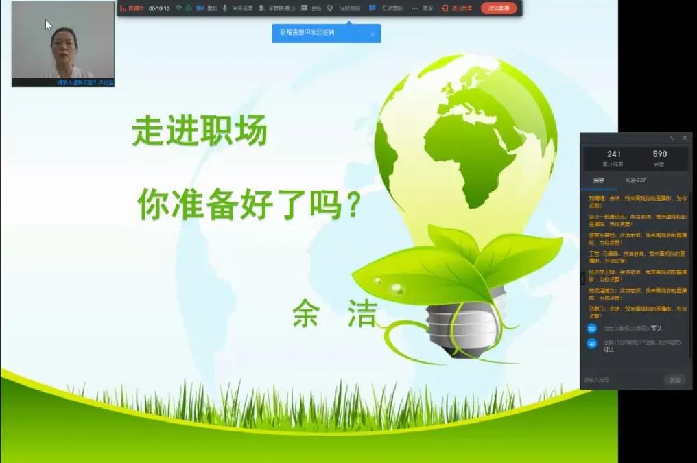 面向未来,路在脚下;主动求职,尽早就业。公司聚焦毕业生关于求职简历、面试礼仪与技巧方面的困惑,为帮助大家解决在就业过程中遇到的问题,6月19日早上9点,beat365副教授、SYB培训师、NCDA职业发展规划师余洁应校团委的邀请,以“走向职场,你准备好了吗”为题,围绕大学毕业生关注的“如何写出令招聘单位满意的简历”和“怎样在面试中表现出众”两个核心问题,为公司同学做了详实精彩的线上就业指导讲座。beat365在线官网入口2016、2017级本科生参加了讲座。