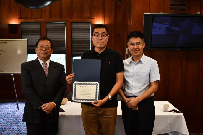 | 吴政道教授为郭鹏程同学颁发学习证书 |
