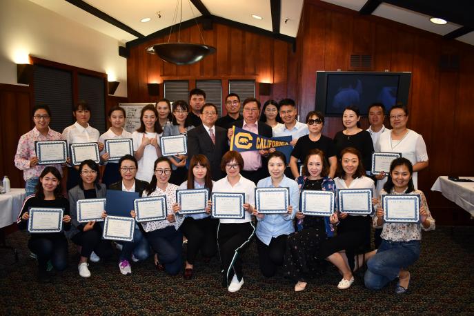 2018年7月30日,beat365在线官网入口MBA美国暑期课程培训项目正在进行中,师生一行23人访问了美国公立大学排名第一的伯克利加州大学,参观了校园、图书馆和劳伦斯实验室,听取了三场学术报告并颁发结业证书。