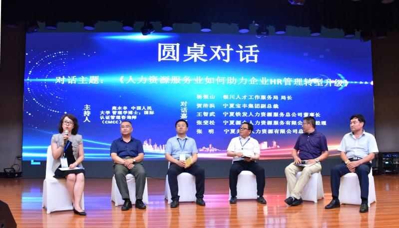 随后,在特邀主持人苑木辛的主持下,银川人才工作服务局局长杨银山等人举行了主题为《人力资源服务业如何助力企业HR管理转型升级》的圆桌对话,让现场观众感受到了一场理论性与实践性并存的讨论盛会。