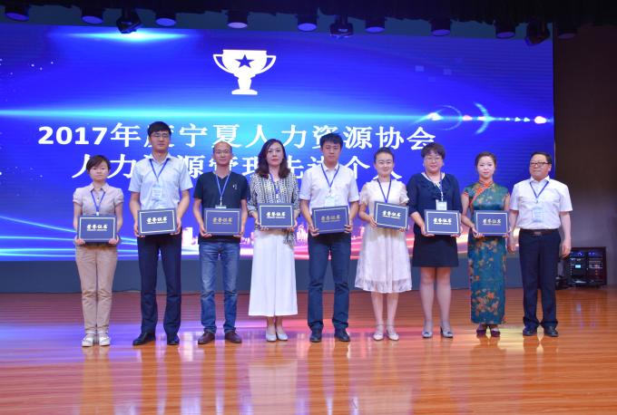 在热烈的掌声中,宁夏人力资源协会为获得“2017年度人力资源管理先进单位、先进个人”和“人力资源服务优秀会员企业家”颁奖。