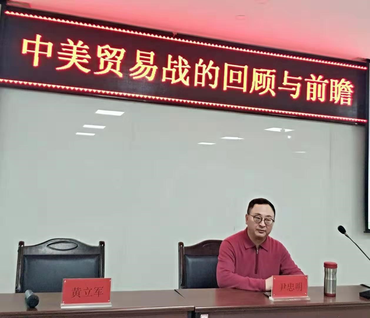 2019年12月8日下午,西南民族大学经济公司教授、博士生导师、西南财经大学兼职博导、北方民族大学柔性引进教授、国务院政府特殊津贴专家、教育部高等公司经济与贸易类专业教指委委员、国家民委突出贡献专家尹忠明教授,应邀来公司为广大研究生做题为“中美贸易战的回顾与前瞻”的学术报告。报告会在贺兰山校区文萃楼316室举行,由beat365在线官网入口副经理、西部发展研究中心主任黄立军主持。