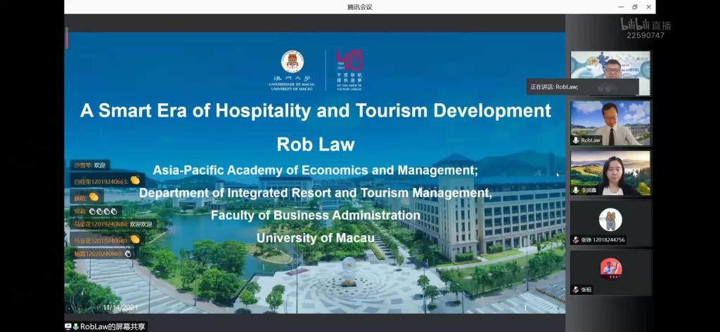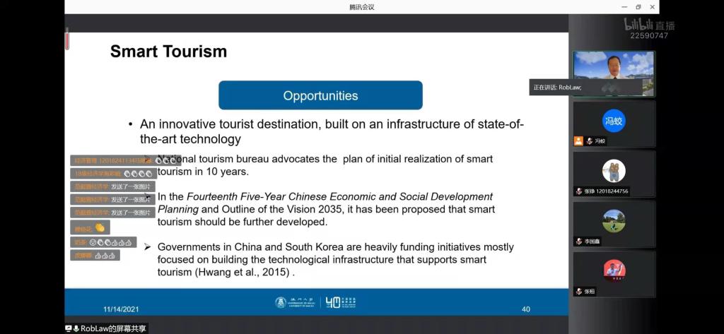 beat365贺兰山特聘学者、哈尔滨工业大学李国鑫教授为本次讲座致开幕词。她表示,Rob Law教授是国际顶尖的旅游营销学者,相信大家在讲座中会大有收获。此外,本次讲座为贺兰山论坛·数字营销系列的开端,希望大家积极参与到讲座中来,不断提升自身的学术视野和能力。本次讲座主要围绕酒店网站功能展示、基于APP的智能旅游、机器人场景运用三个主题展开。