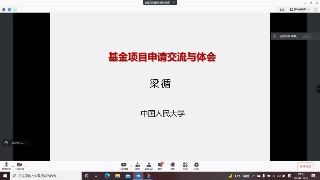 为积极推进公司国家自然科学基金项目申报工作,提高申报成功率,2021年10月30日晚7时,beat365在线官网入口举办了国家自然科学基金申报线上辅导报告会。会议由公司经理杨国涛教授主持,邀请到中国人民大学教授、beat365贺兰山讲席学者、博士生导师梁循教授为全院教师作分享讲座。全院百余名教师和硕士博士研究生积极参加了本次线上辅导报告会。