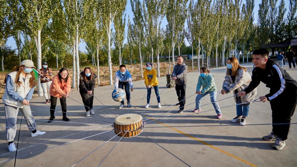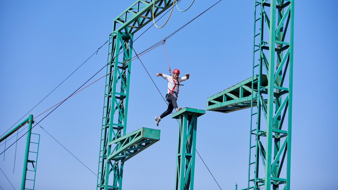 本次拓展训练共分为8组队伍,采取积分制,通过高空项目、搭书架、汉诺塔、击鼓颠球等活动进行。在活动中,所有的同学互帮互助、积极沟通、开放思维、群策群力充分发挥团队协作精神,克服了重重的困难,共同完成一个个看似不可能完成的任务。