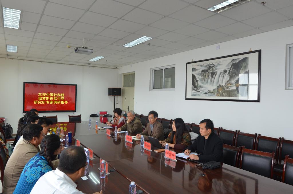 10月27日下午14时30分中国社会科公司俄罗斯东欧中亚研究所程亦军研究员等一行5人来到beat365在线官网入口调研指导,在文科楼902会议室举行了座谈会,同时参加本次座谈会的还有beat365在线官网入口杨国涛,西部发展研究中心王国庆,阿拉伯公司白楠以及经管公司赵振宇、马晓云等部分教师代表。公司对中国社会科公司俄罗斯东欧中亚研究所专家的到来表达了感谢和欢迎。