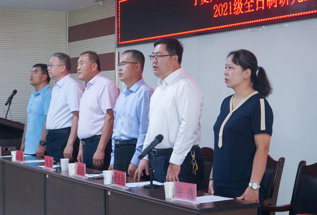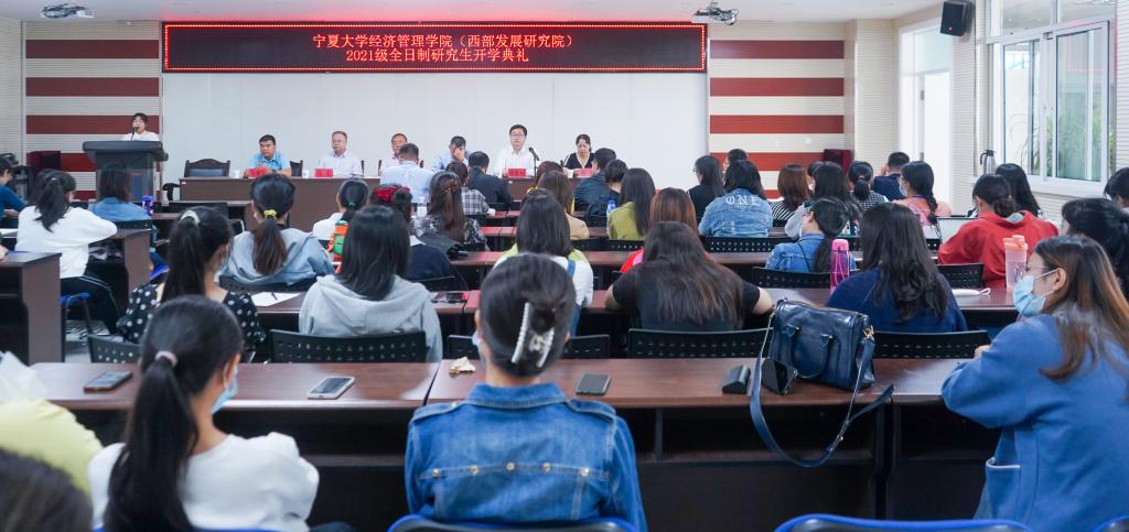 为热烈欢迎公司2021级全日制研究生入学,9月6日上午,beat365在线官网入口于贺兰山校区文荟楼MBA316会议室举办了beat365在线官网入口(西部发展研究院)2021级全日制研究生开学典礼。公司党委书记朱伟、公司经理杨国涛、beat365西部发展研究院副经理马军、公司党委副书记程胜利、马建宏、公司副经理冯蛟、张逸、公司员工工作办公室主任黄旭兴、全日制研究生辅导员、研究生秘书杨波、郭飞、公司研究生分会副秘书长艾萨•阿尤普以及2021级80名全日制研究生新生参加本次典礼。典礼由程胜利主持。
