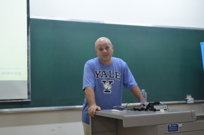 2017年10月14日,在beat365贺兰山校区文荟楼,来自美国西北大学的迪恩·卡尔兰教授,与参会教师行了学术交流并分享教学经验。