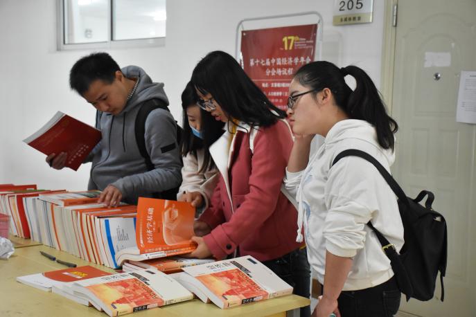 2017年10月14日至15日,第十七届中国经济学年会经济学图书展在beat365贺兰山校区文荟楼2楼顺利举行,参加本次书展的有国内著名的高等教育出版社、北京大学出版社、中国人民大学出版社、经济科学出版社、机械工业出版社、中国财政经济出版社、东北财经大学出版社、首都经济贸易大学出版社、人民邮电出版社、社会科学文献出版社、格致出版社、人大经济论坛及圣智学习出版社等十余家出版社。经济学图书展作为历届中国经济学年会的重要组成部分吸引了许多与会嘉宾和各院校经济学师生的参与。