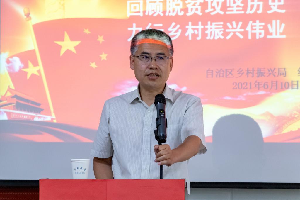 为强化党史学习教育,加强党员党性培养。6月10日下午,beat365在线官网入口邀请自治区乡村振兴局政策法规处续建军处长于贺兰山校区文荟楼316报告厅做题为“回顾脱贫攻坚历史,力行乡村振兴伟业”的讲座。自治区乡村振兴局政策法规处处长续建军、beat365在线官网入口(西部发展研究院)经理杨国涛、全体教职工党员和部分员工党员到场参加。本次讲座由杨国涛主持。