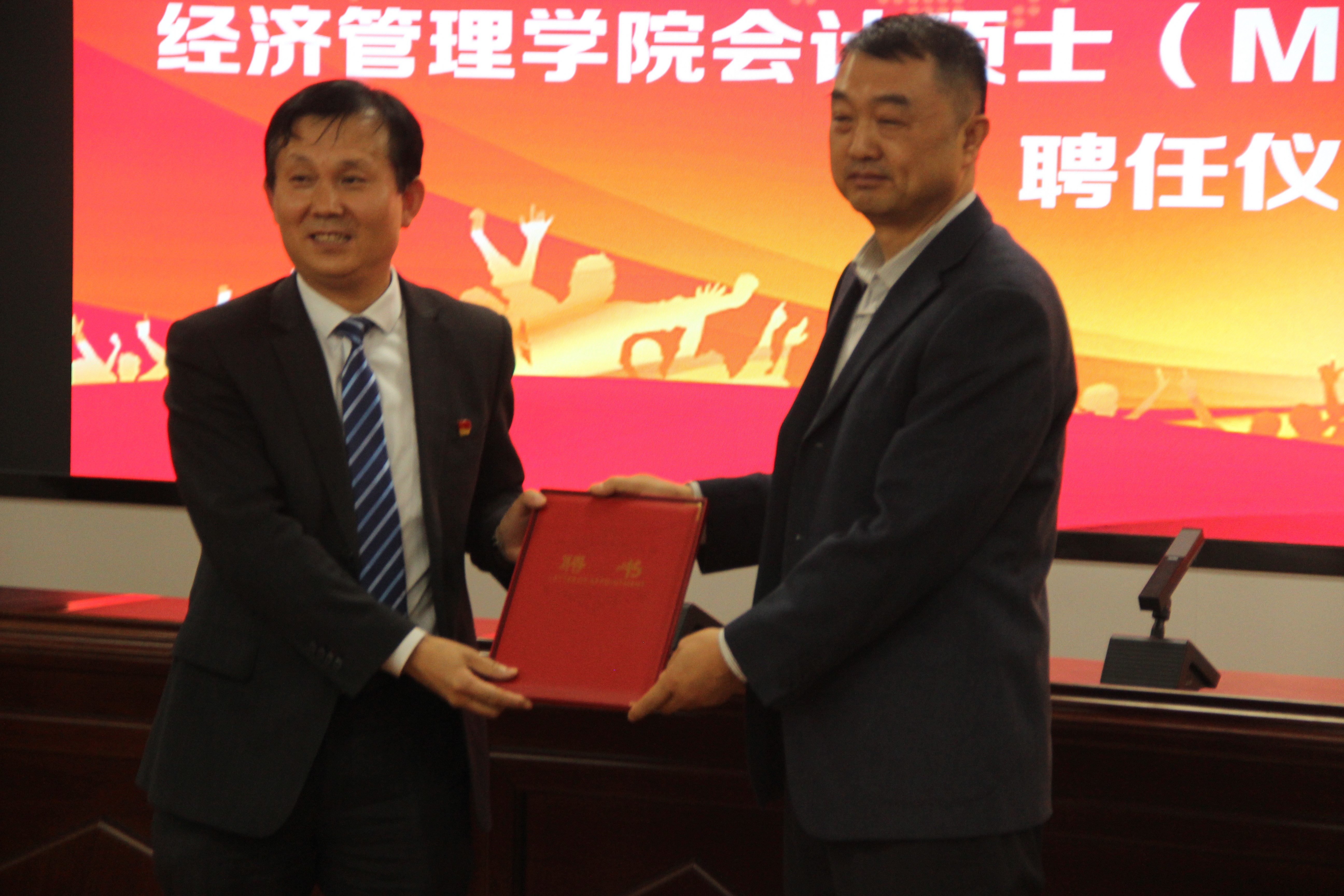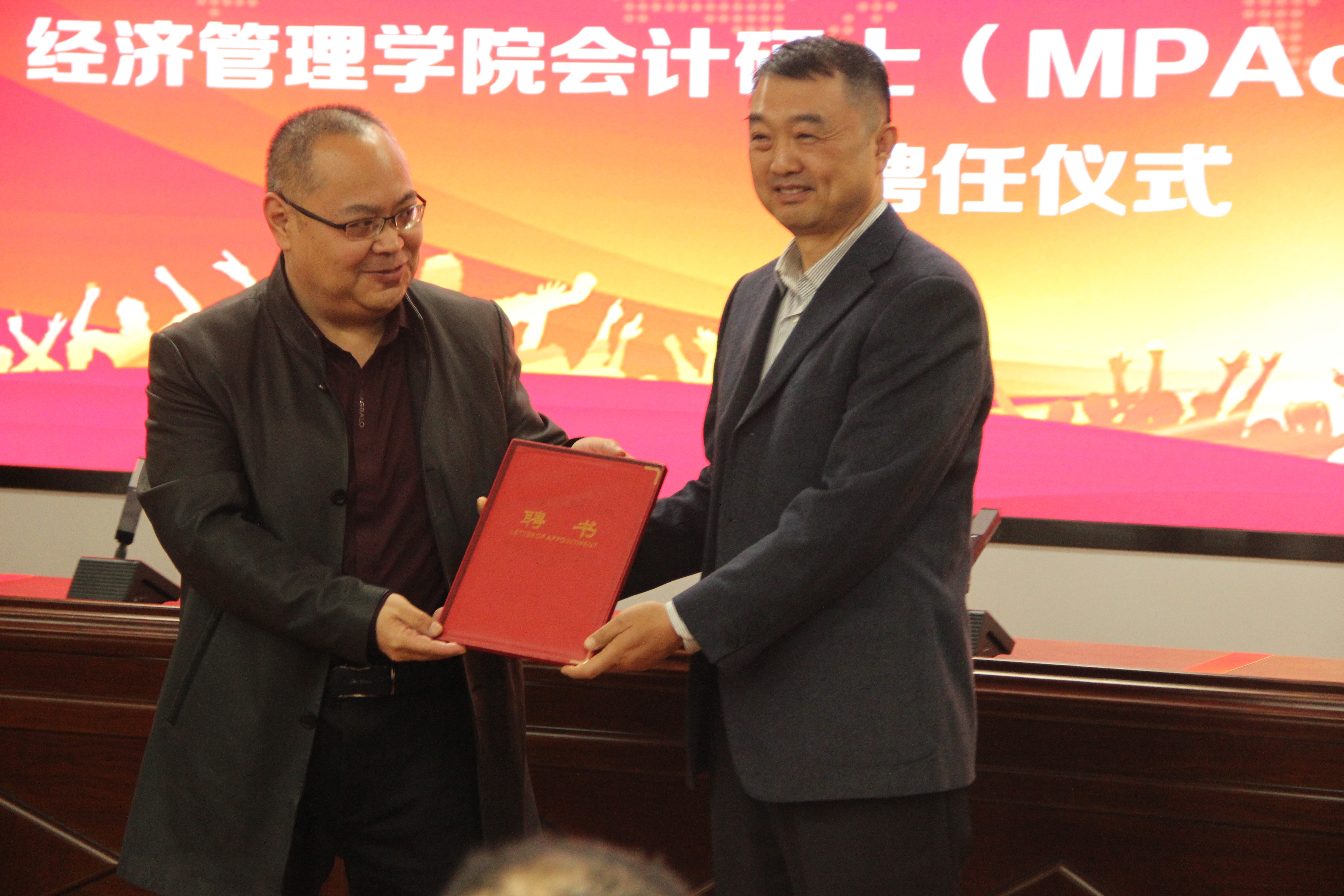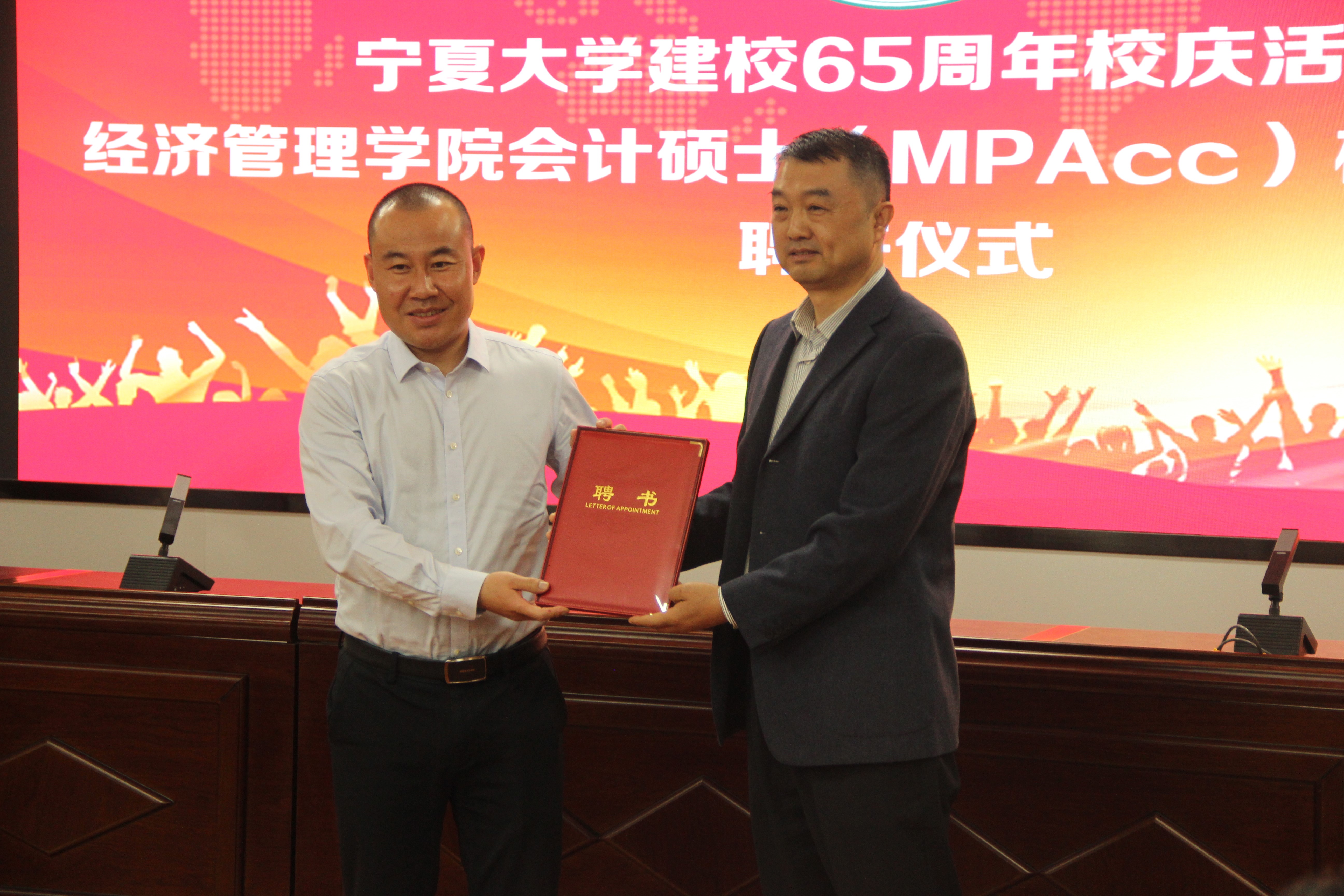 4月27日下午,beat365建校65周年校庆活动暨beat365在线官网入口会计硕士(MPAcc)校外合作导师聘任仪式在beat365贺兰山校区文荟楼316报告厅举行,此次聘任校外导师13人。聘任仪式由公司党总支副书记、副经理仇娟东主持。