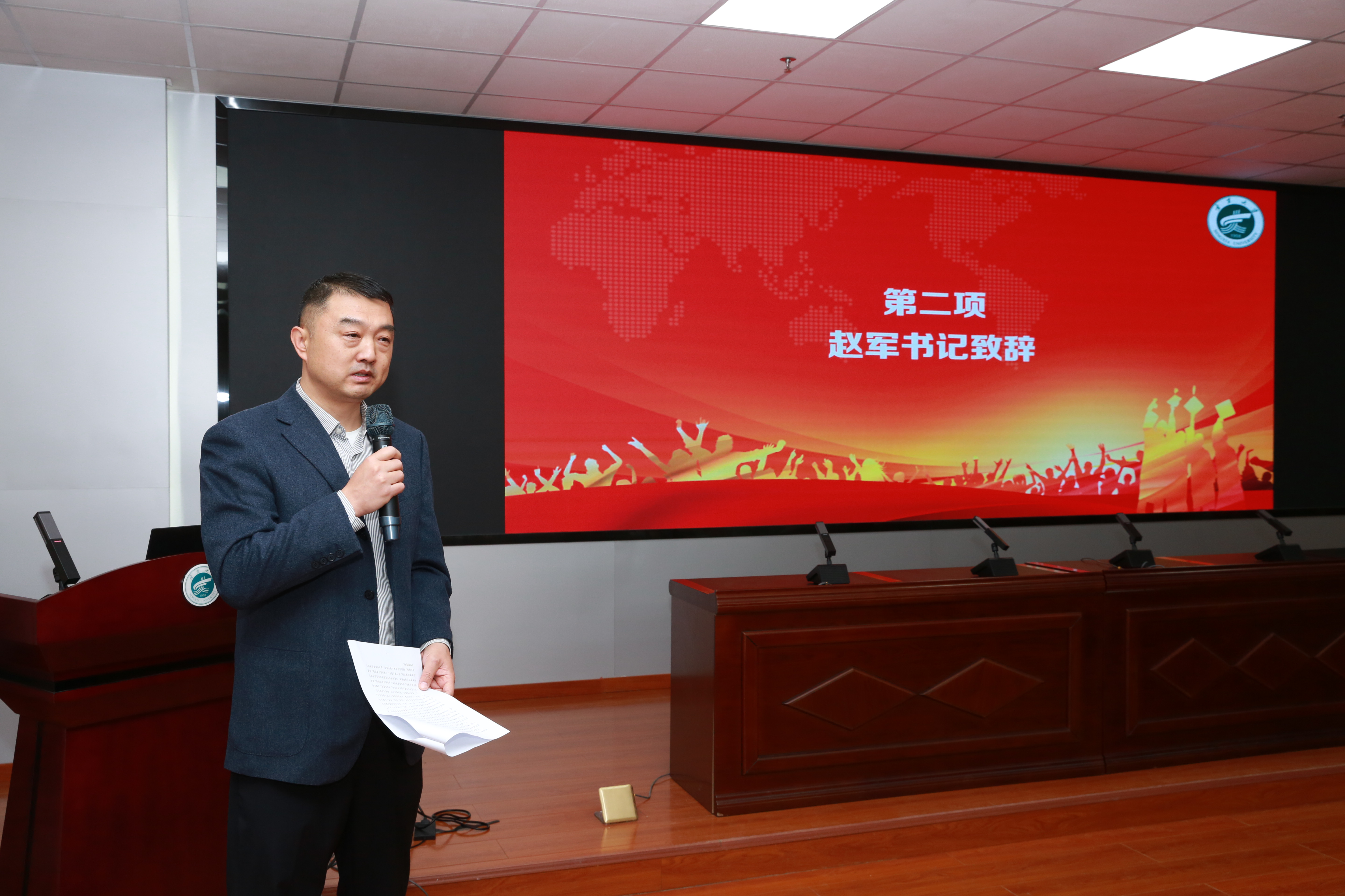 会议第二项内容是公司党总支书记赵军教授致辞。赵书记介绍了公司在团队队伍、学科发展、专业建设、人才培养等方面的进展,表达了进一步推进多方面合作的期待,宣读了公司柔性引进人才实施办法并为受聘导师颁发聘书。
