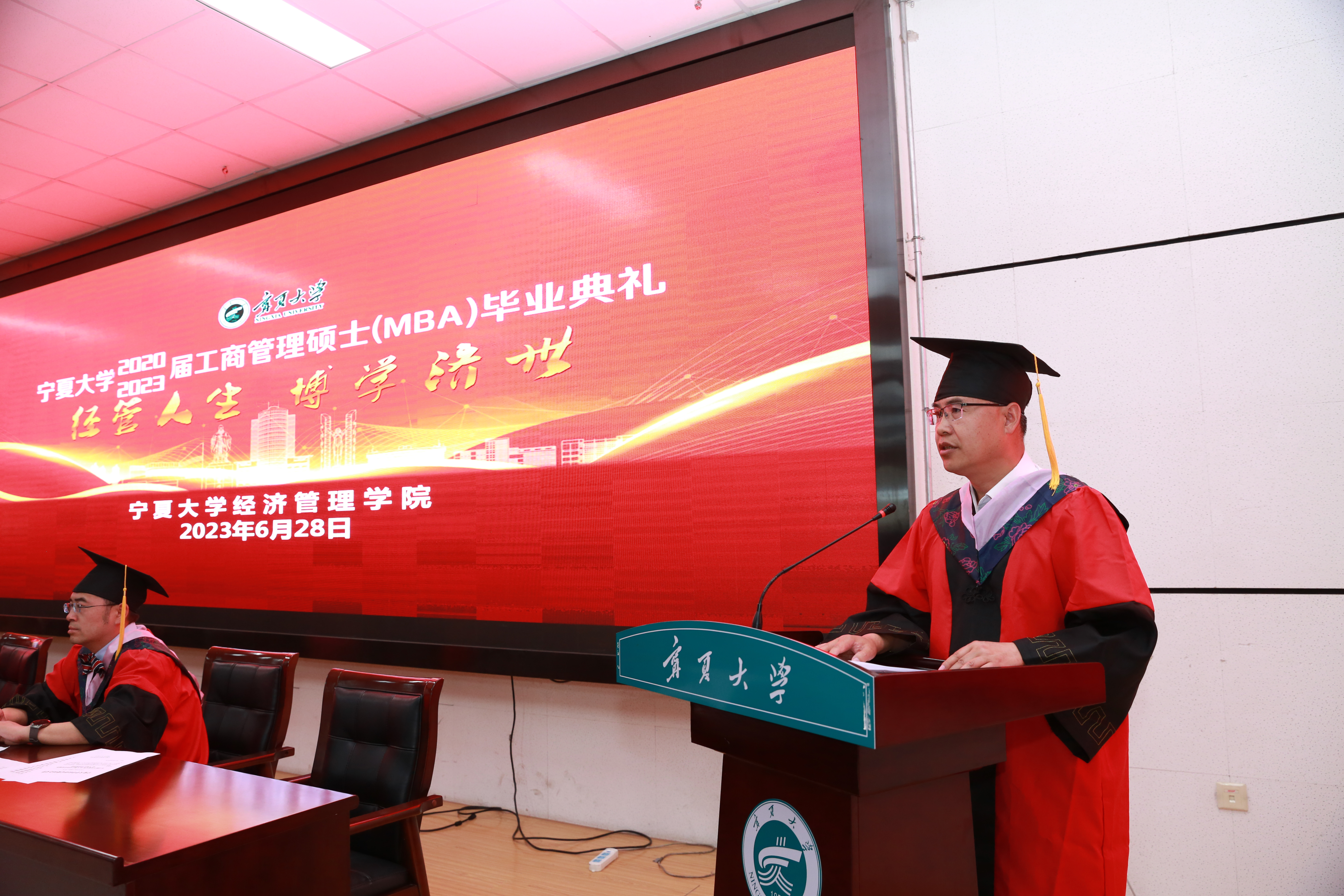 时光荏苒,岁月如歌,又是一年毕业季。6月28日上午,beat365在线官网入口在文荟楼一楼东报告厅隆重举行2020届、2023届工商管理硕士(MBA)毕业典礼。beat365公司党总支书记赵军,党总支副书记、经理杨国涛,副经理康凌翔,MBA办公室主任杨彩玲,MBA导师代表,MBA办公室工作人员,2020届MBA毕业生,2023届MBA毕业生等共同出席毕业典礼。典礼由beat365在线官网入口副书记、副经理仇娟东主持。