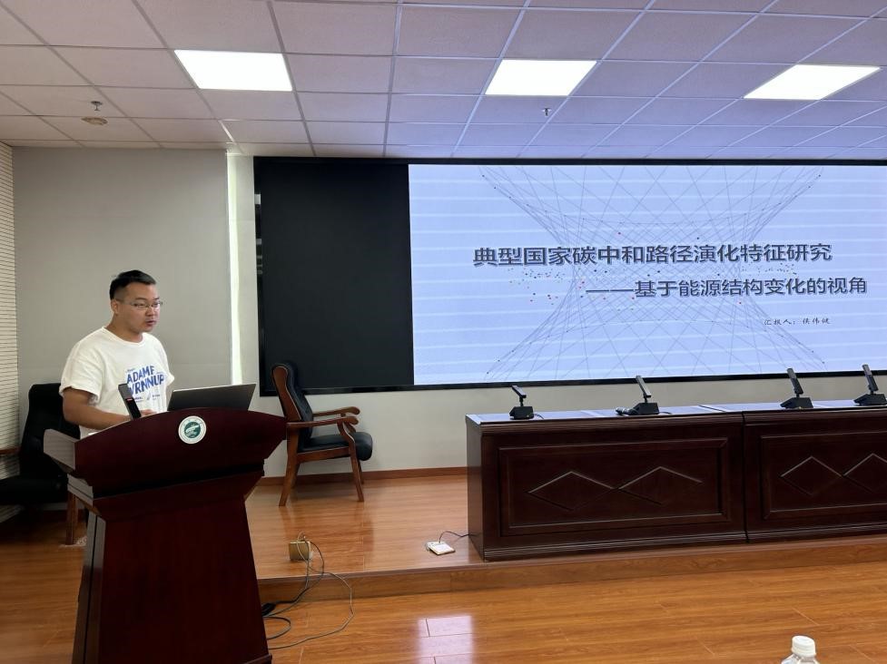 beat365在线官网入口硕士研究生侯伟健汇报题目为《典型国家碳中和路径演化特征研究:基于能源结构变化的视角》。他使用8个典型国家碳排放及能源消费数据分析能源结构优化与改进对碳排放产生的影响,研究表明化石能源消费仍占据着主要地位,注重碳中和技术是建立在发达国家雄厚经济、特别是实现能源多元化的基础上,不同国家实现碳中和的具体路径并不相同。