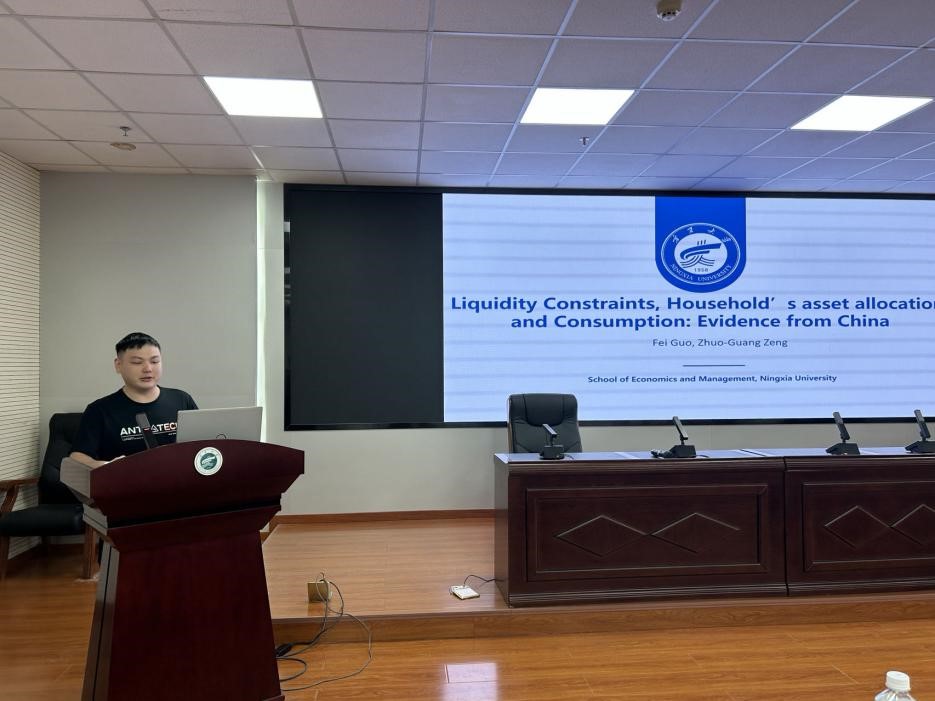 beat365在线官网入口硕士研究生曾卓光汇报题目为《Liquidity Constraints, Household's asset allocation, and Consumption: Evidence from China》。他介绍了流动性约束对中国不同资产配置家庭的消费和边际消费倾向的持续影响,重点关注受到很强的流动性约束的“Hand-to-Mouth”特殊家庭群体,拟为促进消费稳定增长的政策制定提供新思路。