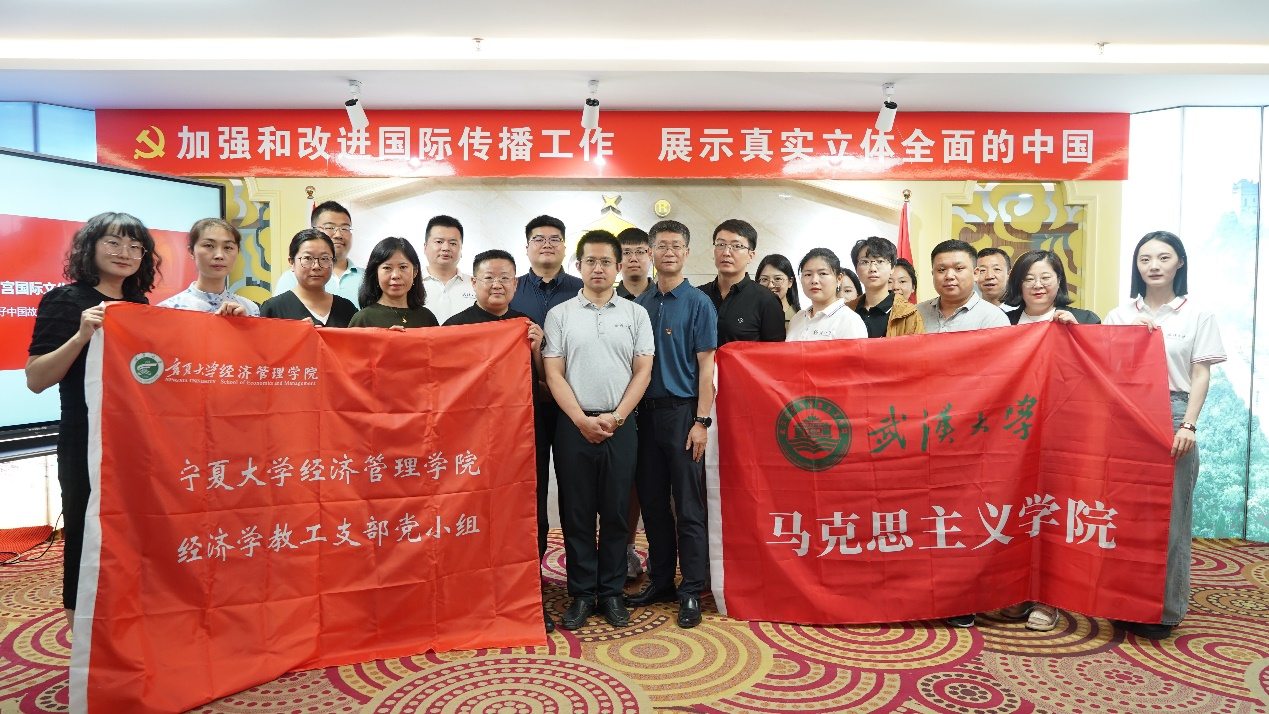 活动议程的第三部分,武汉大学马克思主义公司党支部、beat365在线官网入口经济学教工党支部、智慧宫国际文化传播集团有限公司党支部全体党员合影留念。