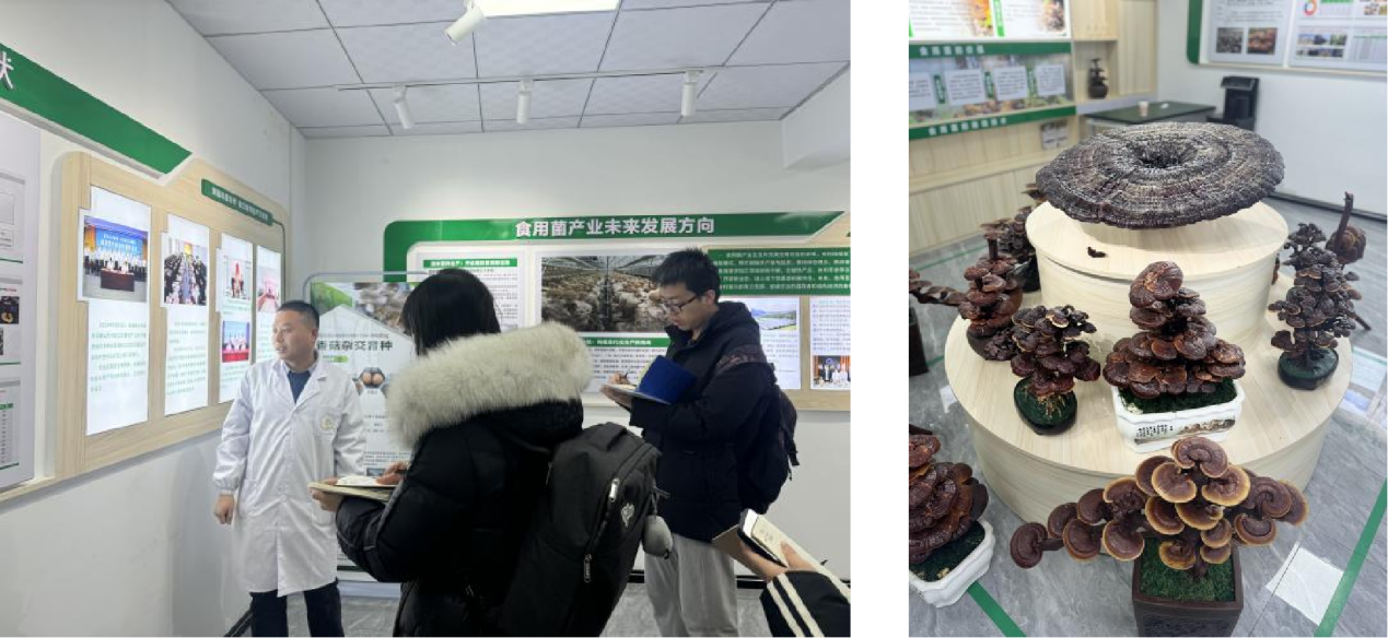 随后,在王金成老师的带领下,师生们深入研究中心内部,依次参观了现代生产车间、智能化方舱种植区与传统种植大棚。走进现代化的生产车间,大家目睹了从培养基配制、灭菌、接种到菌丝培养的全流程机械化、标准化作业,对食用菌工厂化生产的科技含量与效率有了直观认知。在智能化方舱种植区,师生们惊叹于环境智能控制系统,其可实时调节温湿度与光照,展现了现代农业科技在有限空间内释放高效、绿色生产的巨大潜力。在传统大棚内,同学们观摩了食用菌的常规栽培模式,了解温度、湿度、光照等环境因素对菌类生长的直接影响,并对基层农户的生产实践有了切身感受。从传统大棚到智能方舱的对比参观,使大家清晰地认识到科技进步对农业生产方式的深刻变革。