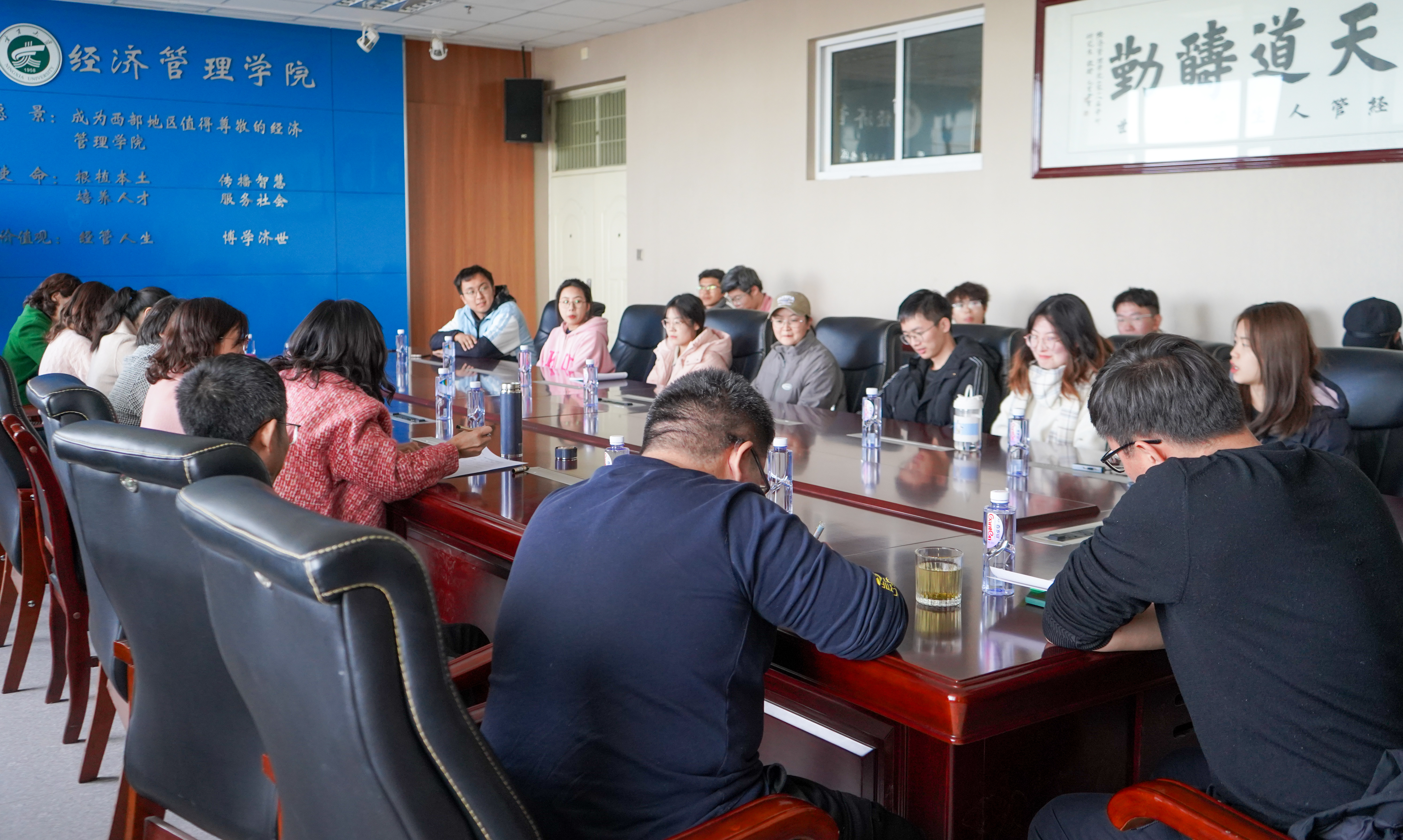 为更全面、准确地了解员工在学习与生活中存在的问题及诉求,提高教师教学质量和管理水平,11月8日下午,beat365在线官网入口2023-2024学年第一学期教学期中检查师生座谈会于文荟楼904会议室顺利召开。beat365督导组赵智宏、倪小莉、赵燕妮,beat365在线官网入口副经理康凌翔,经济学系主任刘涛,工商管理系主任张淑萍,工商管理专业硕士点负责人朱丽娅,农林经济管理专业东梅、于艳丽老师,勤学书院员工办公室负责人艾萨·阿尤普,教育与社会学部员工办公室负责人杨琳及来自公司各年级各专业员工代表参加会议。会议由赵智宏主持。