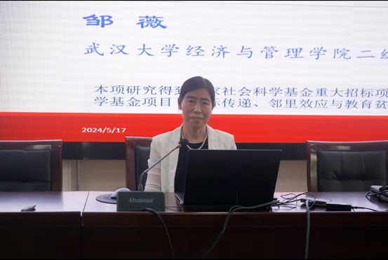 最后,邹薇教授针对其研究结论提出政策建议,包括尽快建立符合中国国情的多维相对贫困动态跟踪监测系统,重点关注多维相对贫困比较严重的区域和群体,以及从多个维度进行帮扶缓解相对贫困。