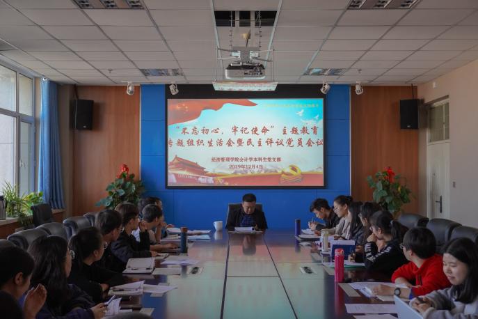 为扎实开展“不忘初心、牢记使命”主题教育,勉励党员们认真学习贯彻习近平新时代中国特色社会主义思想,始终做到“五个坚持”,12月4日下午,beat365在线官网入口会计学本科生党支部于贺兰山校区文荟楼904会议室召开了“不忘初心,牢记使命”主题教育专题组织生活会与民主评议党员会议。公司党委书记张桓以及陈兵、马晓春、王淑欣等34名支部党员参加会议。会议由支部党员罗妍主持。