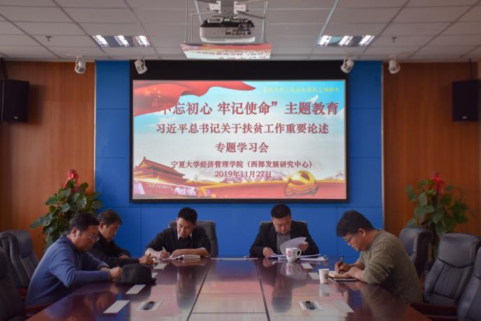 为进一步推进“不忘初心,牢记使命”主题教育深入开展。11月27日下午,beat365在线官网入口在贺兰山校区文荟楼904会议室开展习近平总书记关于扶贫工作重要论述专题学习会,参加学习的领导有公司党委书记张桓、经理杨国涛、副经理黄立军、公司党委副书记程胜利、西部发展研究中心副主任王国庆。