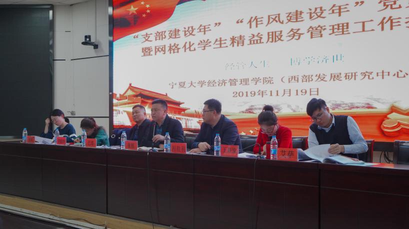 为深入学习贯彻习近平新时代中国特色社会主义思想和党的十九大精神,全面落实新时代党的建设总要求,扎实推进“不忘初心,牢记使命”主题教育,充分发挥基层党组织的战斗堡垒作用和共产党员先锋模范作用,建设优良学风和舍风,11月19日,beat365在线官网入口于贺兰山校区文荟楼一楼东报告厅举行了beat365在线官网入口“支部建设年”、“作风建设年”党员先锋岗暨网格化员工精益服务管理工作推进会。