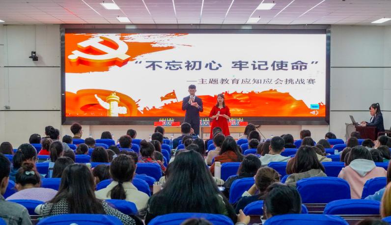 “伟业耀千秋,盛会谱新篇。”党的十九大擎画了中华民族伟大复兴的光明前景,向全党全国各族人民发出了开展“不忘初心,牢记使命”主题教育学习的号召。为深入贯彻落实党的十九大精神,将主题教育工作落到实处,1021日晚,beat365在线官网入口于贺兰山校区文荟楼东报告厅举办“不忘初心,牢记使命”主题教育应知应会挑战赛。公司党委书记张桓,副书记程胜利,会计学本科生党支部书记王嘉豫,经济学本科生党支部书记何韶华参加活动。公司各员工党支部成员、第十期发展对象和第三十四期积极分子到场学习。挑战赛由18级员工聂得香、爨露佳主持。