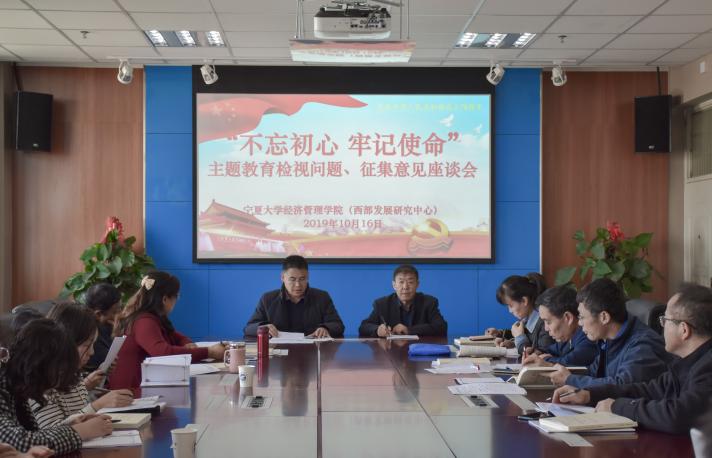为引导党员干部牢记党的宗旨,坚持实事求是的思想路线,10月16日下午,beat365在线官网入口于贺兰山校区文荟楼904教室举办“不忘初心,牢记使命”主题教育检视问题暨征集意见座谈会。中心组成员,三办主任,系主任,支部书记及行政坐班人员到场参加。会议由经理杨国涛主持。
