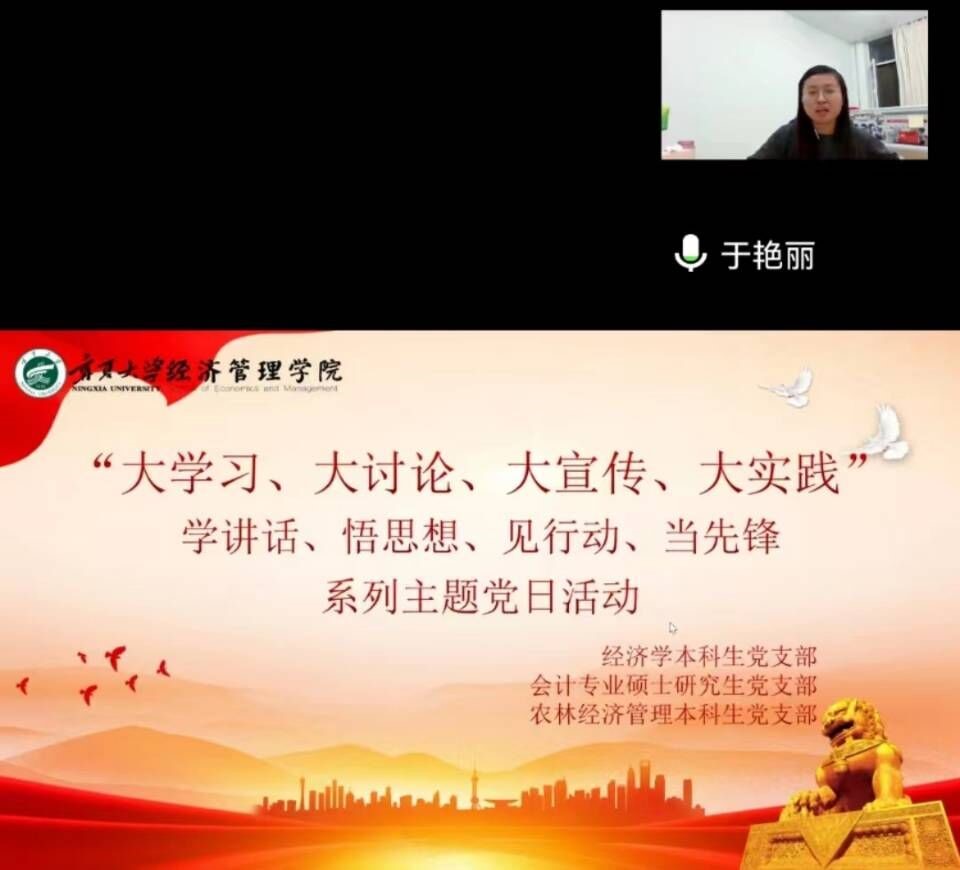 9月30日晚,beat365在线官网入口“大学习、大讨论、大宣传、大实践;学讲话、悟思想、见行动、当先锋”系列主题党日活动在线上顺利举行。经济学本科生党支部、会计专业硕士党支部、农林经济管理本科生党支部参加本次会议。会议由杨艺帆主持。