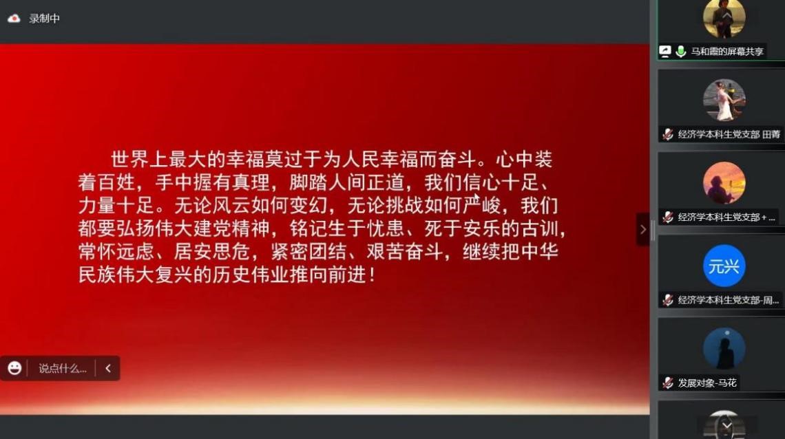 本次党日活动,激励着全体党员在新时代新征程中为祖国建设披荆斩棘、奋勇前进。隔离不隔学,疫情期间的我们也定会更好地沉淀自己,提升自己。我们相信,经管师生定将化理想信念为具体行动,勇毅前行,战胜疫情!