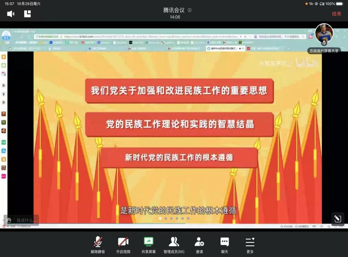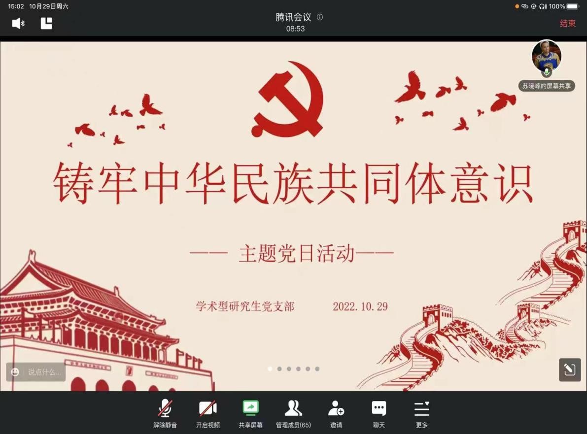 10月29日下午,beat365在线官网入口学术型研究生党支部“铸牢中华民族共同体意识”主题党日活动在线上顺利召开。党支部全体党员、发展对象及积极分子参加会议,会议由党支部副书记苏晓峰主持。