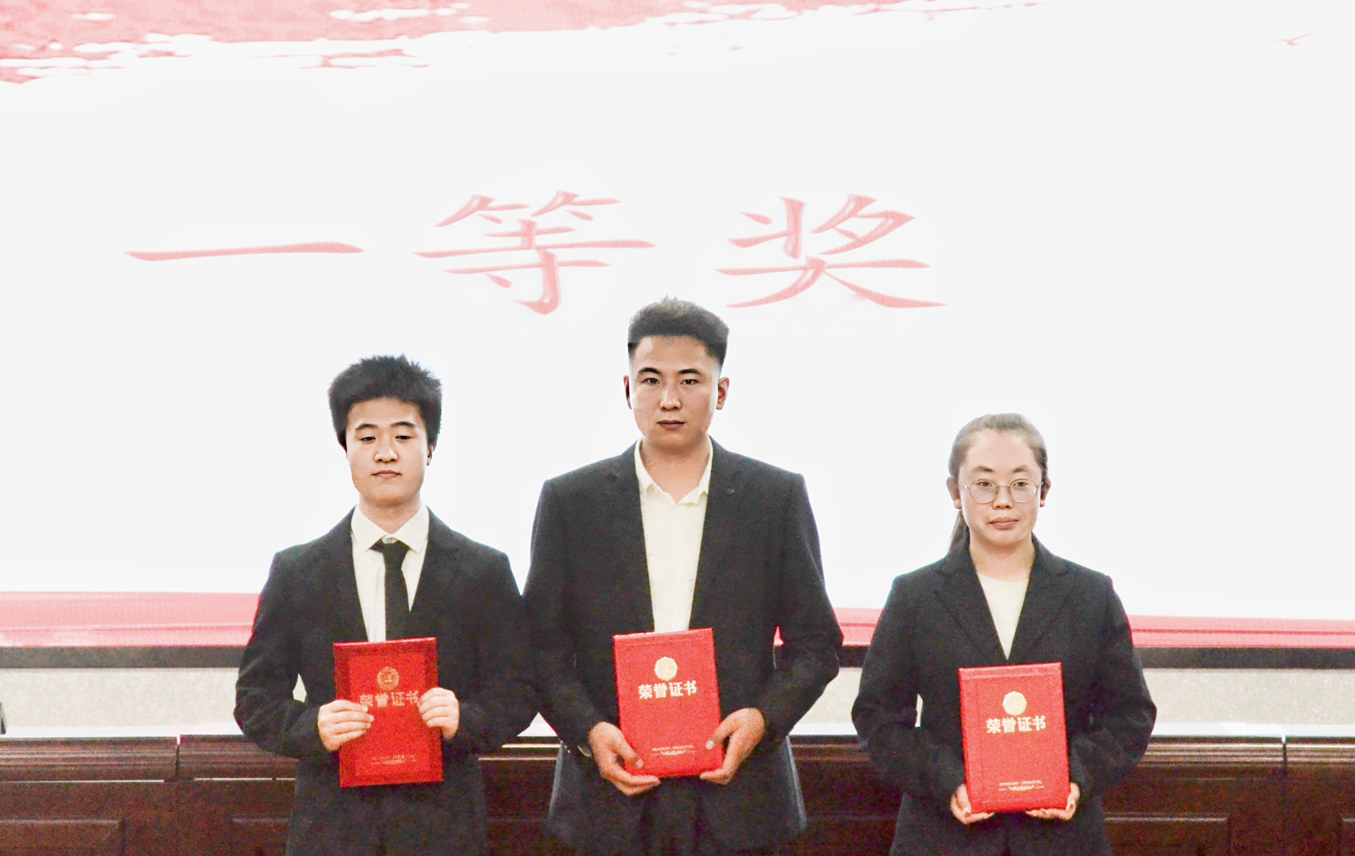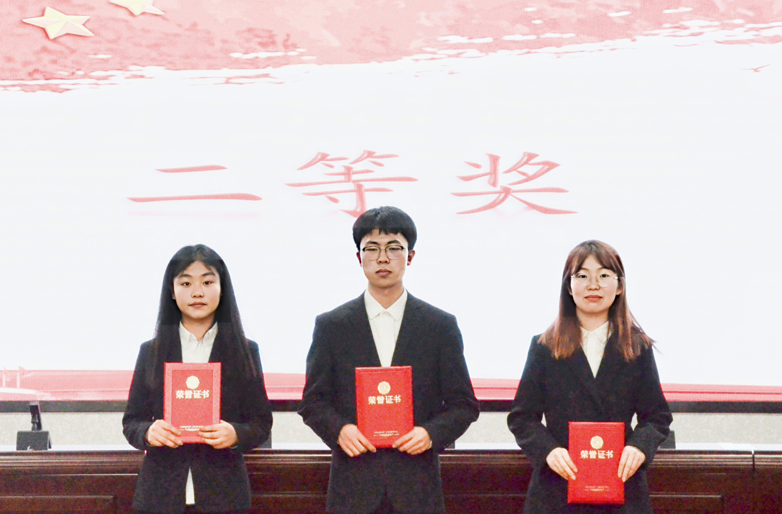 经过百舸争流团体赛和并驱争先抢答题两个环节的激烈角逐,最终,以郜博汶、魏有亮、李蕊组成的第一小组代表队获得优秀奖,以陈儒涵、张瑞、马双组成的第四小组代表队获得三等奖,以奚昀、龙凤、黄定旺组成的第二小组代表队获得二等奖,以李佳文、夏宇、王艳组成的第一小组代表队获得一等奖。