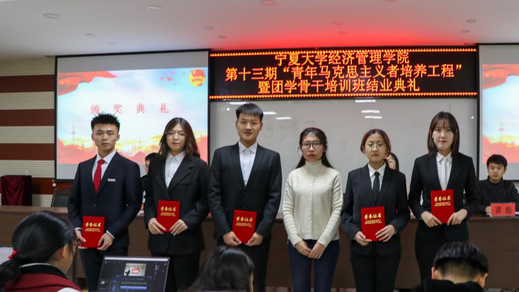 12月14日晚,beat365在线官网入口于贺兰山校区文荟楼316教室举行了beat365在线官网入口第十三期“青年马克思主义者培养工程”暨团学骨干培训班结业典礼。beat365在线官网入口团委书记何韶华、马利君、藉楚妮以及第十三期青马班全体学员到场参加。典礼由团委副书记籍楚妮主持。