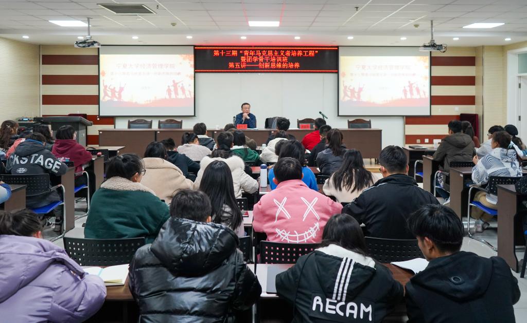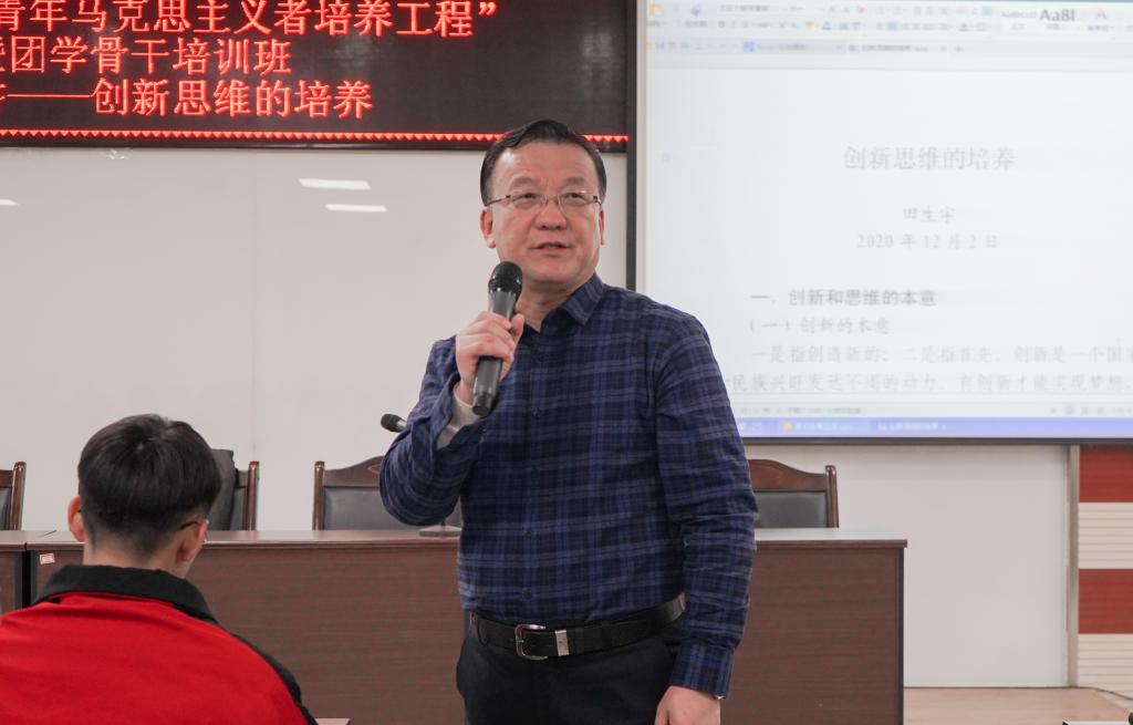 12月2日下午,beat365在线官网入口于贺兰山校区文荟楼316教室召开了beat365在线官网入口第十三期青马班第五讲课程,意在传达党的十九大所倡导的创新性精神,使同学们深入学习并培养创新思维。石嘴山市人大常委会副主任、beat365在线官网入口客座教授田生宇,公司员工办公室负责人何韶华及第十三期青马班全体学员参加了此次课程。本次课程由田生宇主讲,何韶华主持。