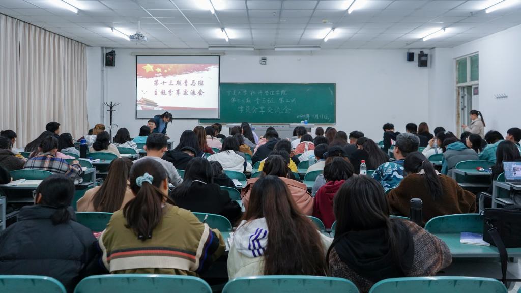 11月17日,beat365在线官网入口于贺兰山校区文荟楼113教室举行了第十三期青马班第三讲学员分享交流会。第十三期青马班全体成员到场学习。会议由2020级物流管理班桂琳主持。