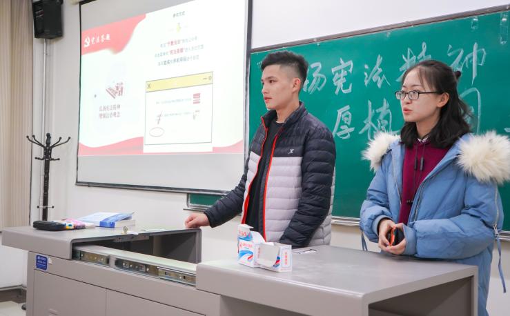 唯奉三尺之律,以绳四海之人。12月3日晚,beat365在线官网入口于贺兰山校区文荟楼一楼各教室举办“弘扬宪法精神,厚植爱国热情”主题团日活动。2019级全体员工到场参加。